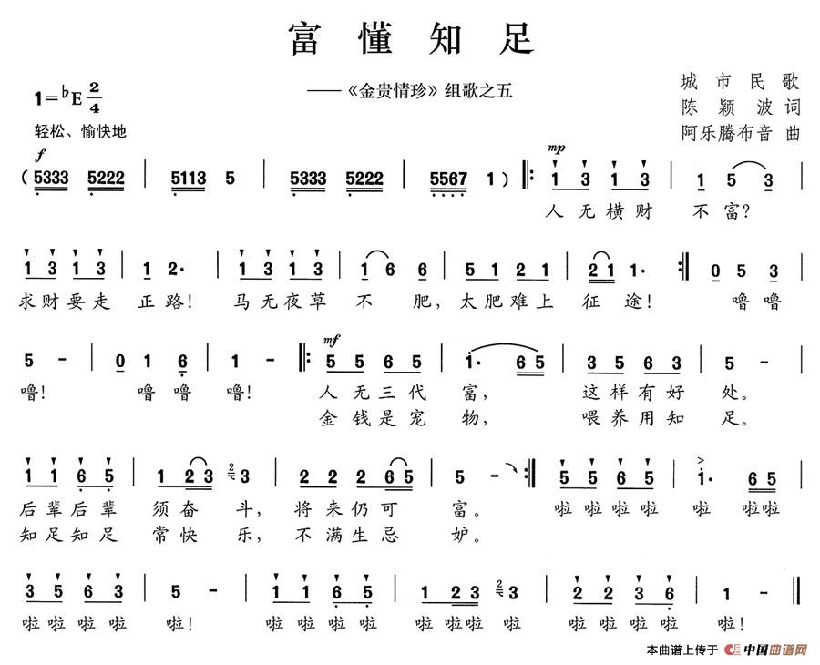 关于《富懂知足》曲谱的评论