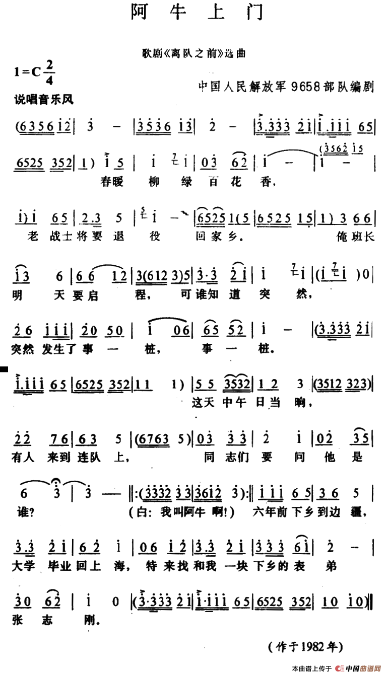作曲:解放军某部编剧、唱迅曲 来源:《中国曲谱网》 上传:秋叶起舞