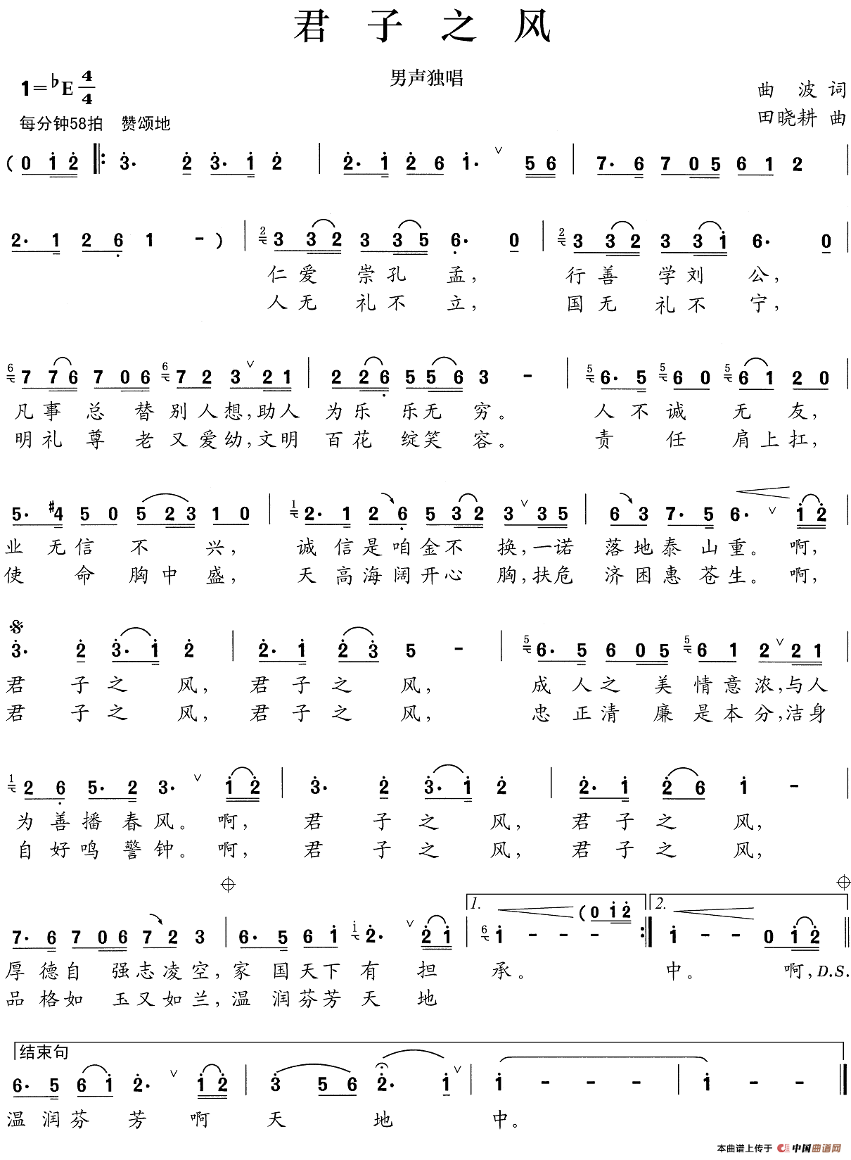 致谢:《中国曲谱网》衷心感谢作者老师馈赠原版歌谱!