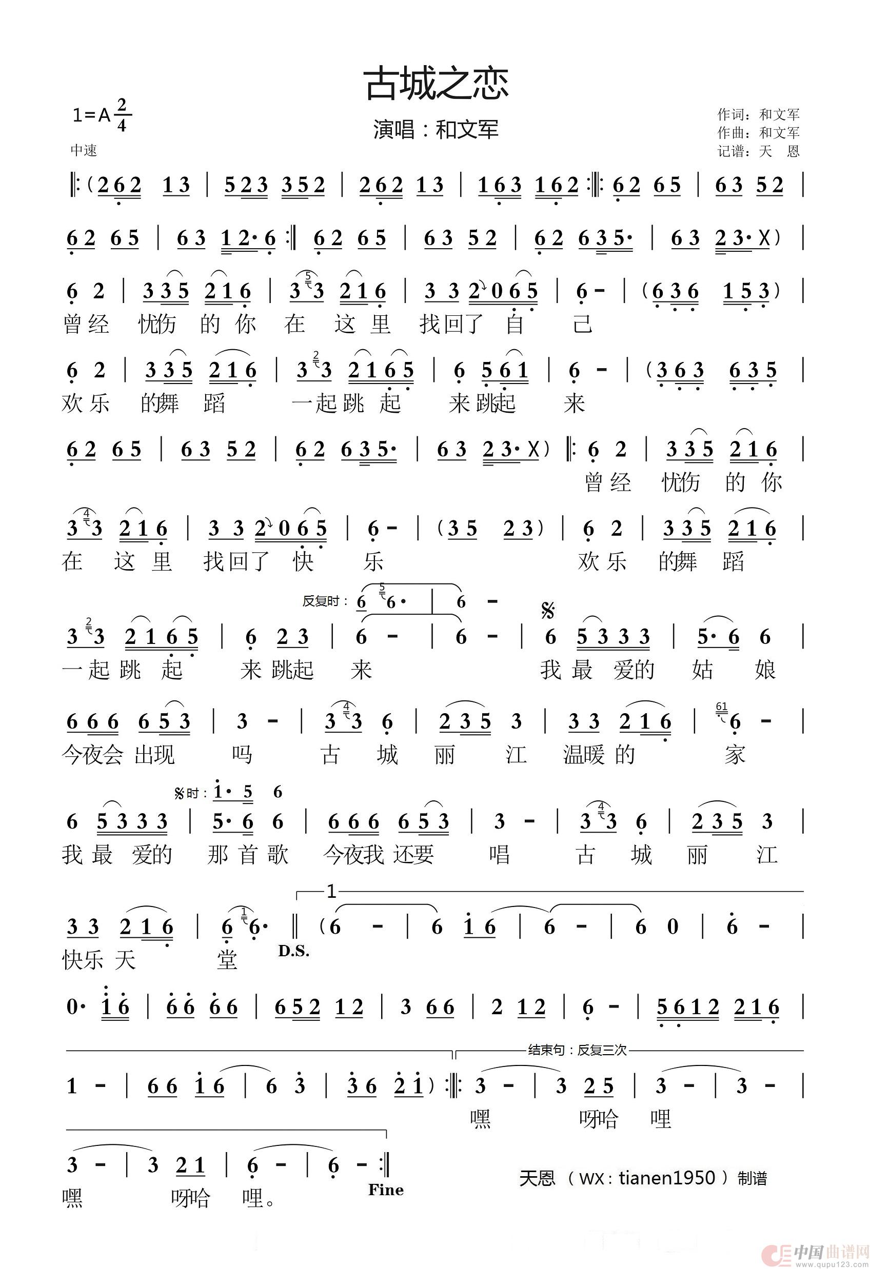 关于《古城之恋》曲谱的评论