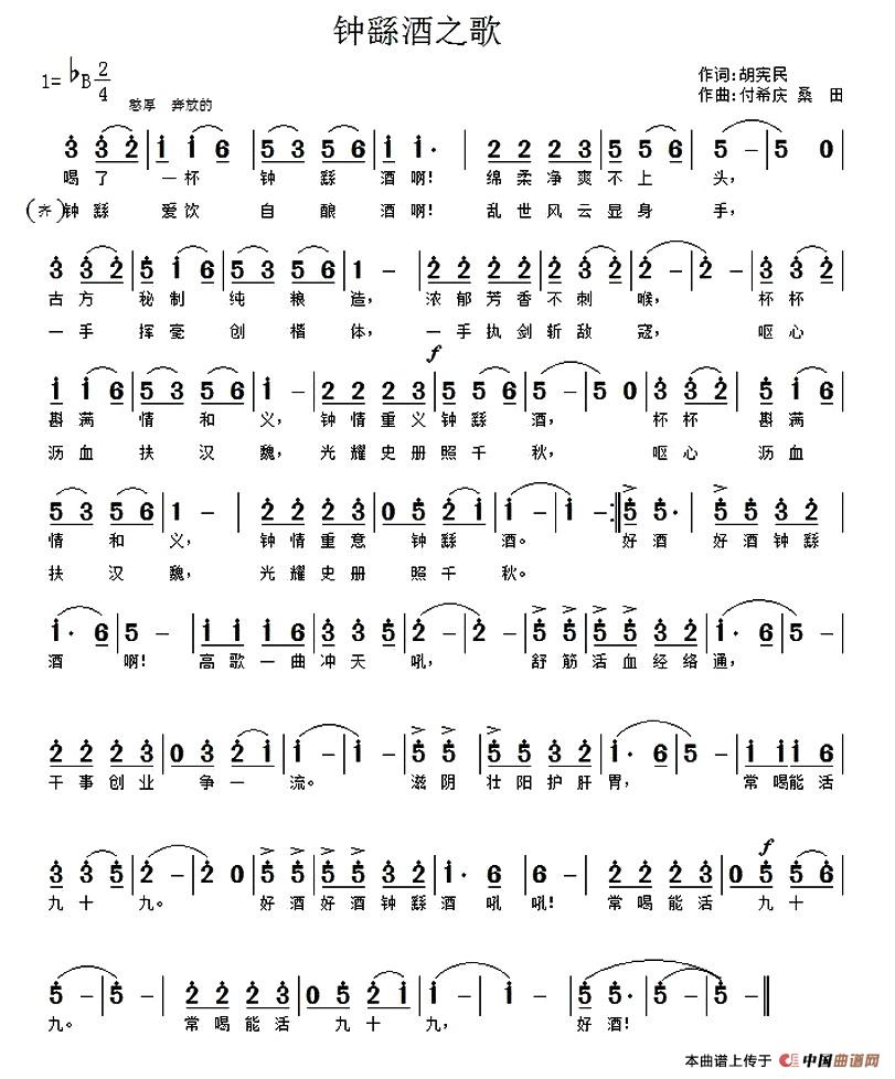 关于《钟繇酒之歌》曲谱的评论