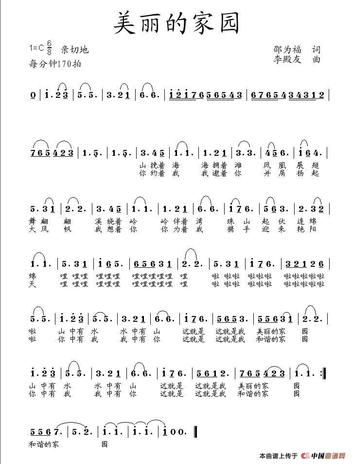 致谢:《中国曲谱网》衷心感谢作者老师馈赠原版歌谱!