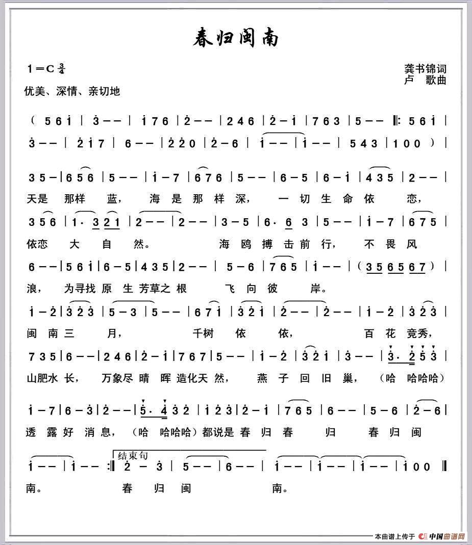 作词:龚书绵 作曲:卢歌 来源:原创作品 上传:车里子
