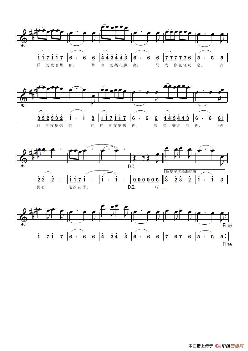 提示:在曲谱图片上单击右键,选择"图片另存为..."即可将曲谱保存到您的电脑中,打印时候可将图片插入到WORD中,调整合适大小打印即可。