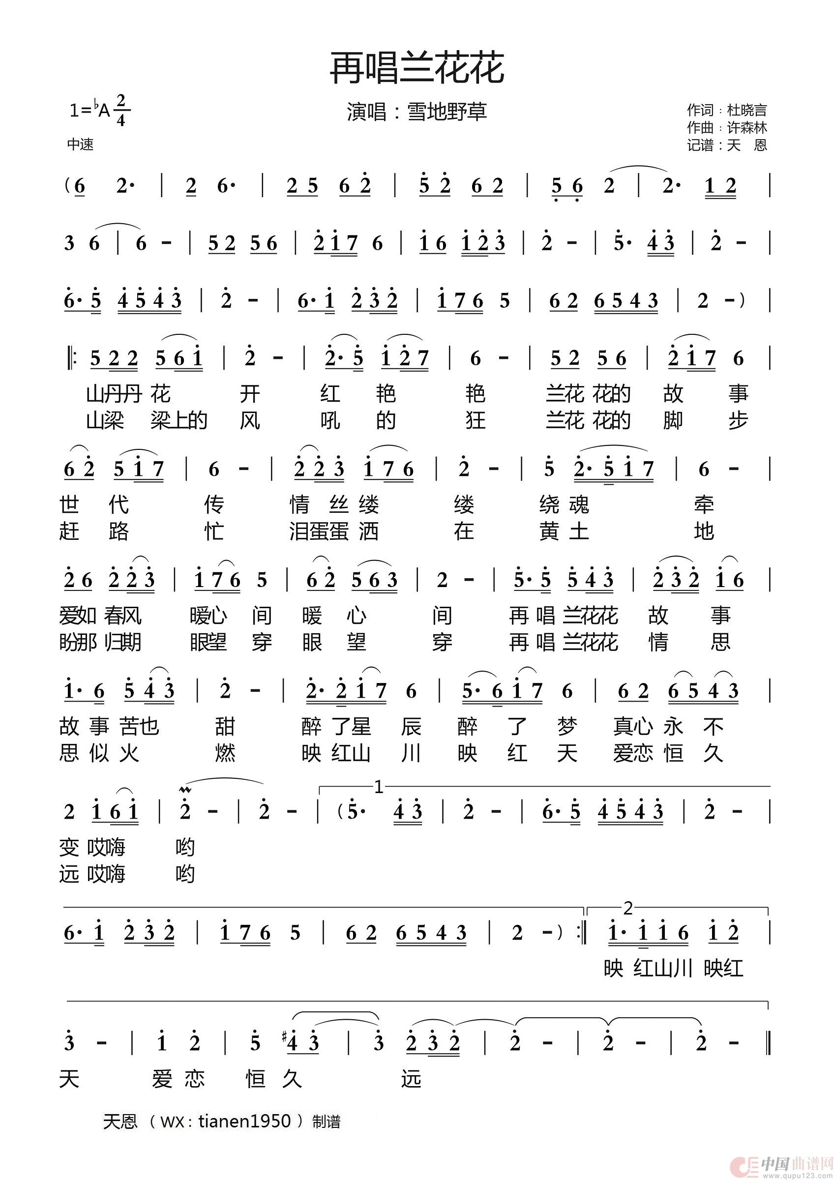 关于《再唱兰花花》曲谱的评论