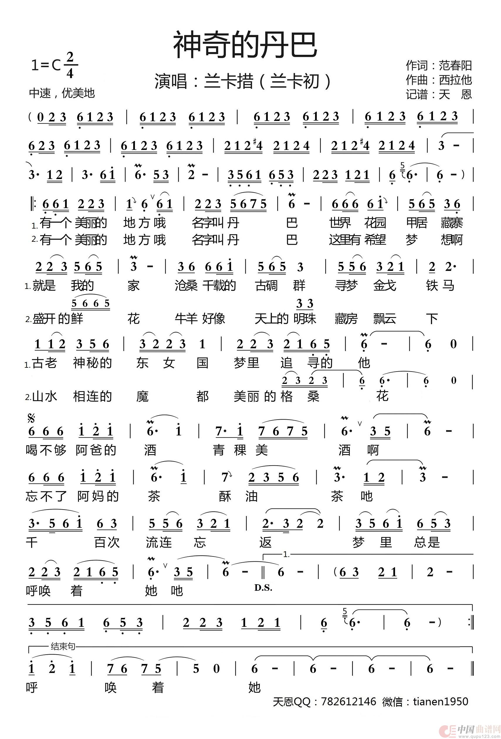 作词:范春阳 作曲:西拉他 演唱(奏):兰卡措(兰卡初) 来源:谱友天恩上传 上传:天恩