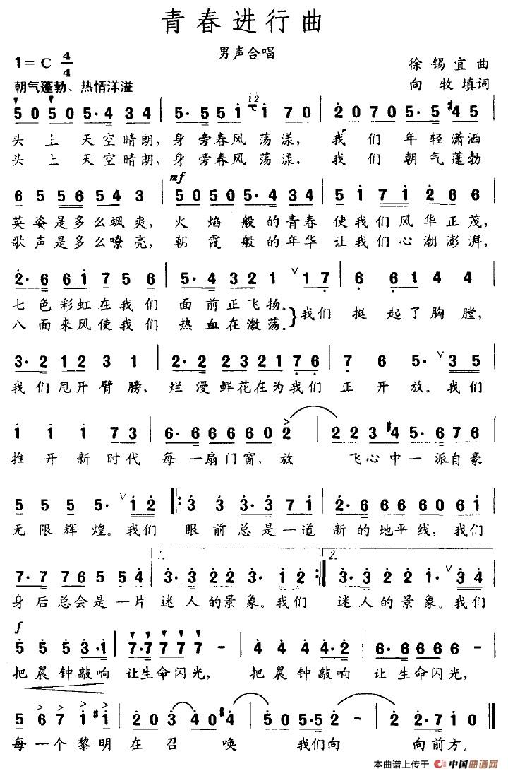 作词:徐锡宜 作曲:向牧 格式:简谱 来源:谱友会跳舞的音符上传 上传:会跳舞的音符