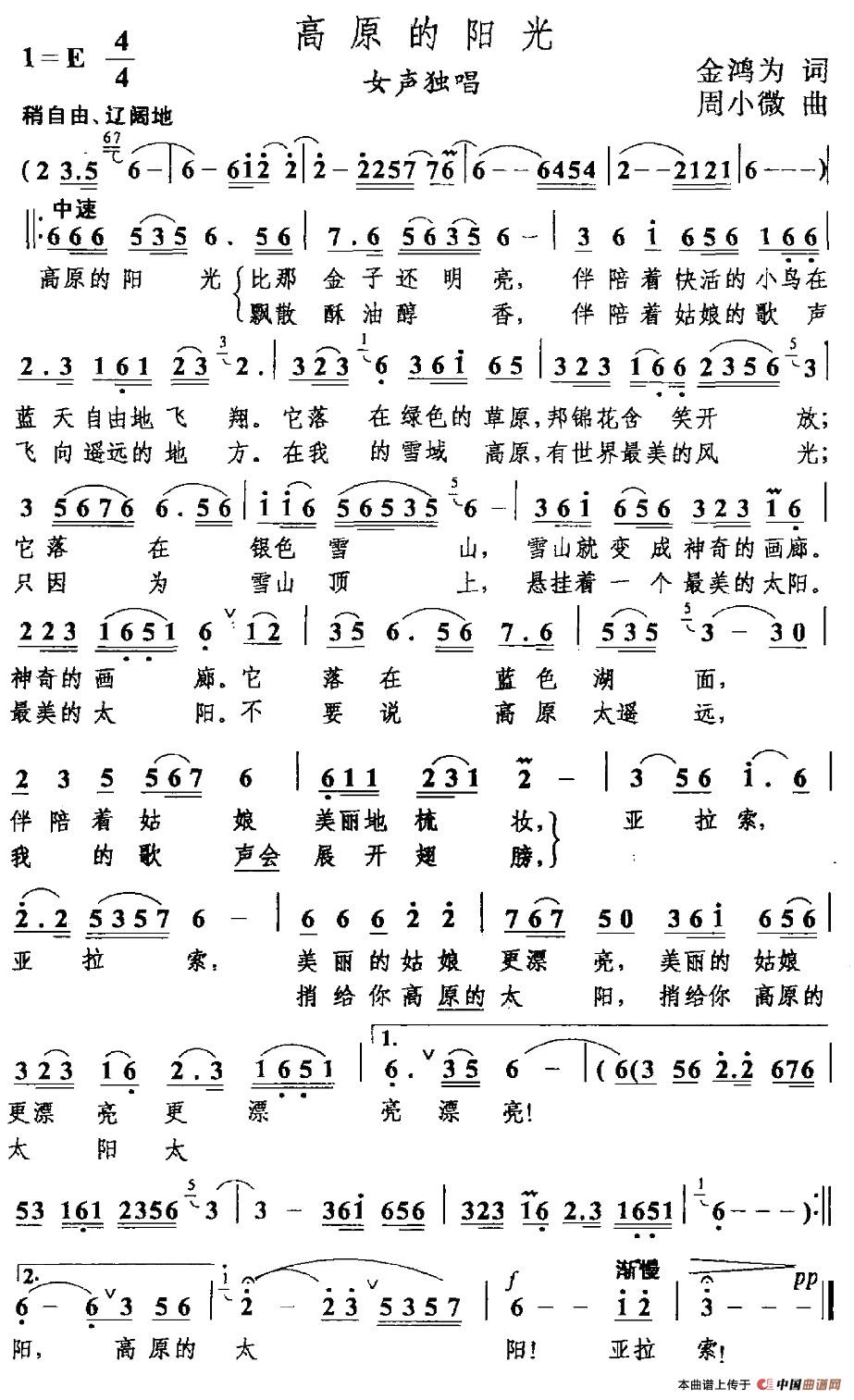 关于《高原的阳光》曲谱的评论