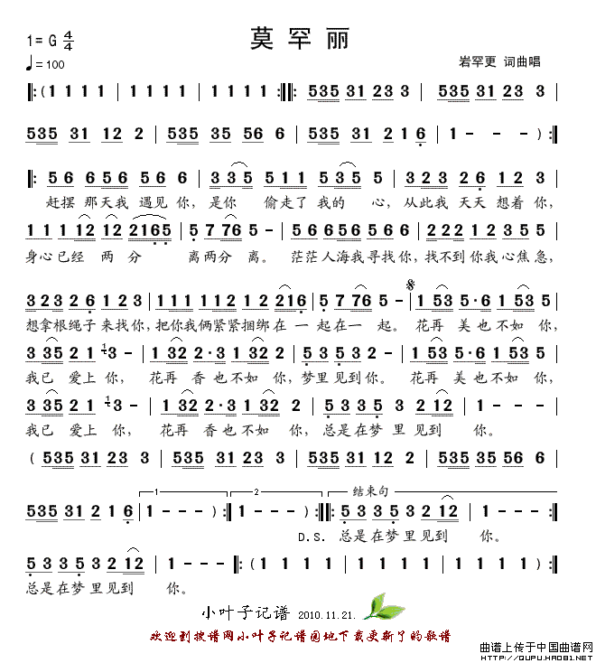 作词:岩罕更 作曲:岩罕更 演唱(奏):岩罕更 格式:简谱 来源:小叶子记谱 上传:~金沙浪~