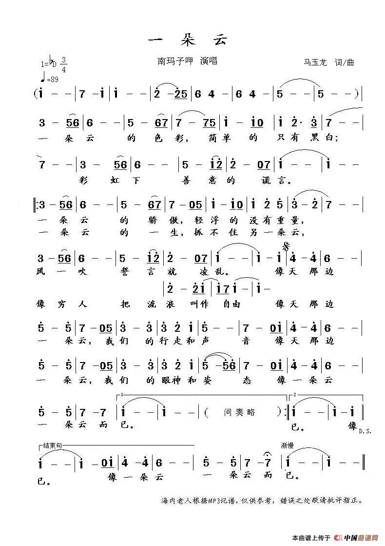 提示:在曲谱图片上单击右键,选择"图片另存为..."即可将曲谱保存到您的电脑中,打印时候可将图片插入到WORD中,调整合适大小打印即可。