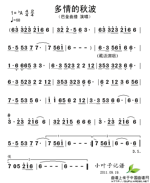 演唱(奏):巴金曲措 格式:简谱 来源:小叶子记谱 上传:~金沙浪~