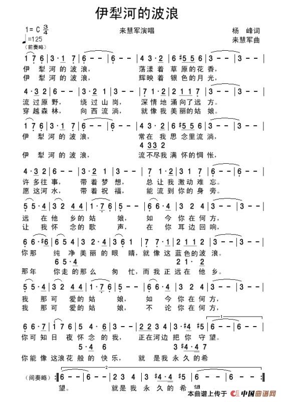 伊犁河的波浪,流不尽我满怀惆怅,愿这河水,带着祝福,能流到你的身旁。