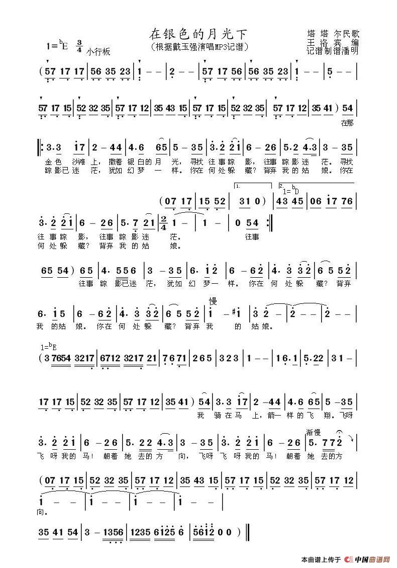 关于《在银色的月光下》曲谱的评论