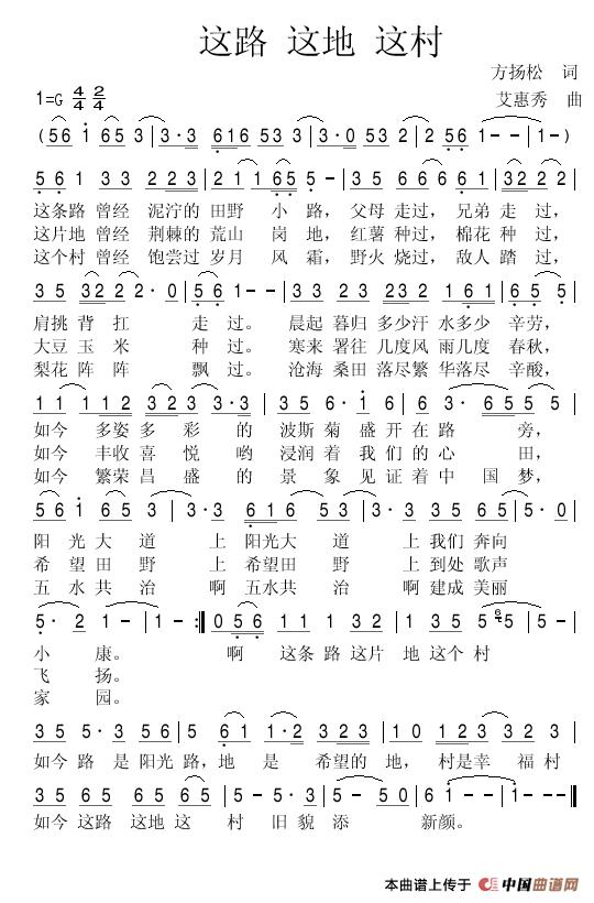 关于《这路 这地 这村》曲谱的评论