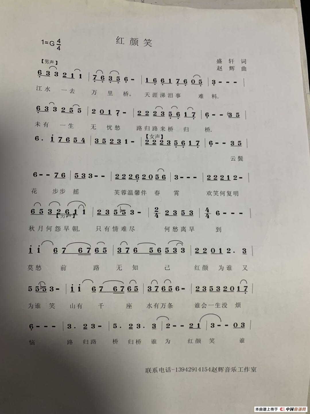 关于《红颜笑》曲谱的评论