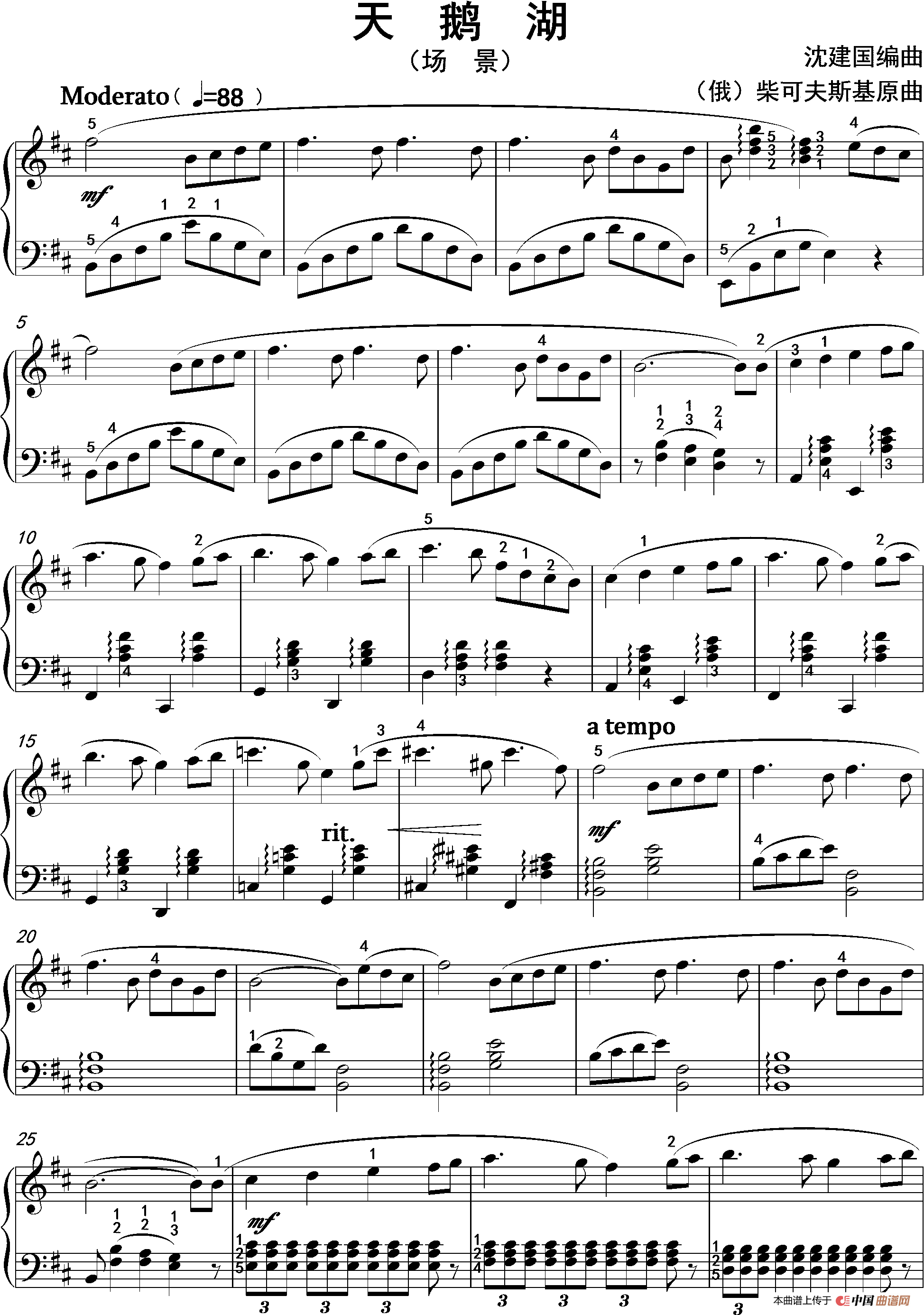 根据柴可夫斯基的芭蕾舞剧《天鹅湖》(场景)音乐而改编的钢琴曲。难易程度相当于6级。