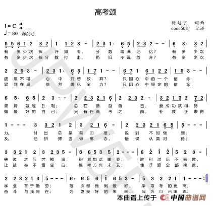 关于《高中颂》曲谱的评论