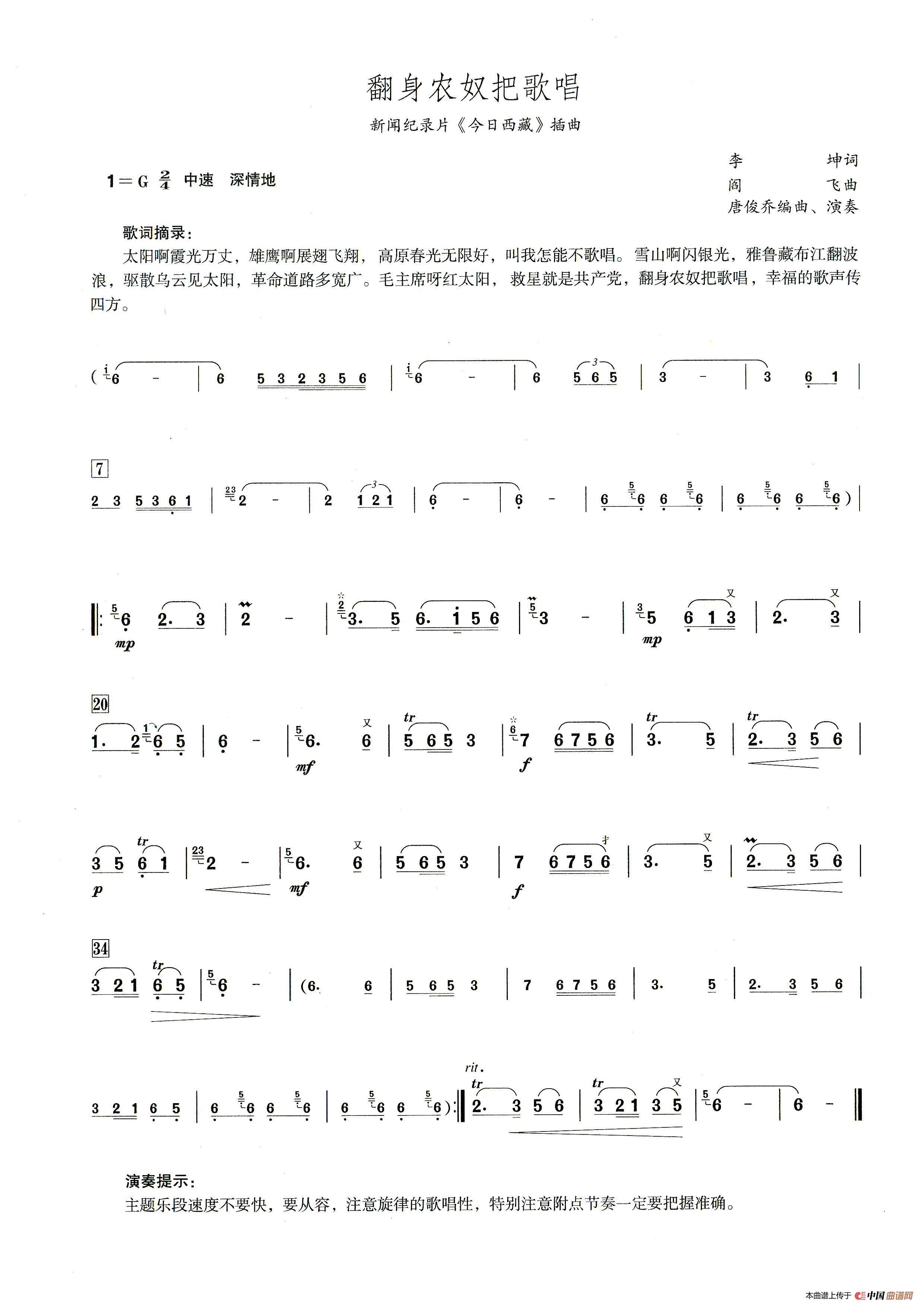 笛子演奏翻身农奴把歌唱-伴奏+示范+曲谱: https://545c.com/dir/13995422-38660042-229928