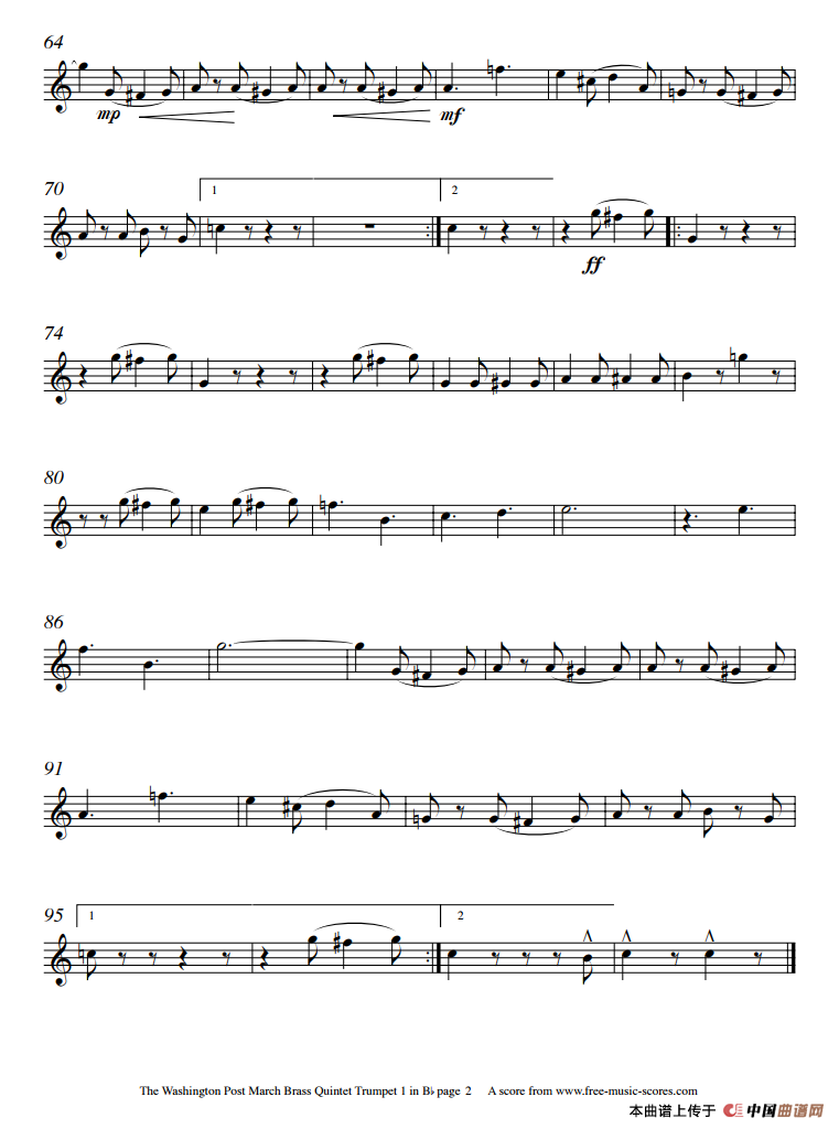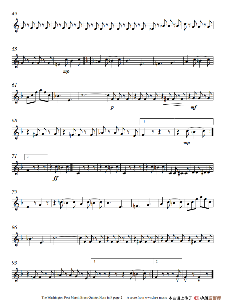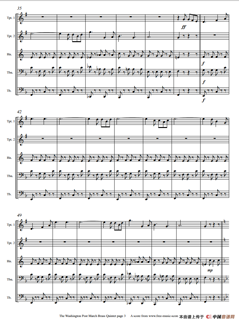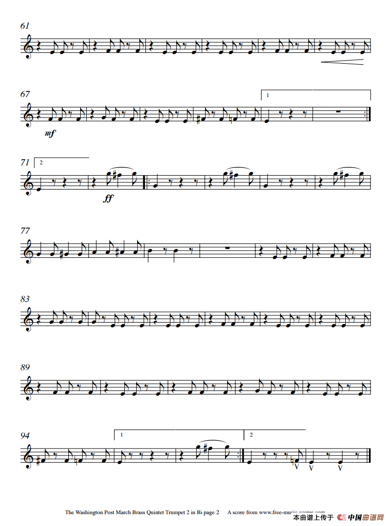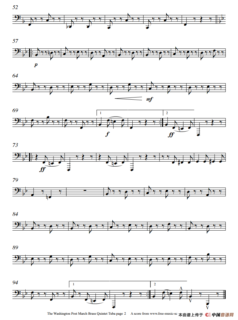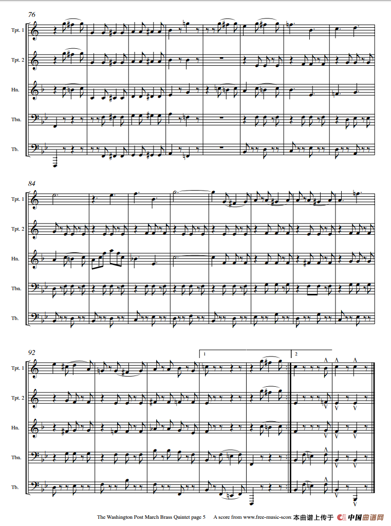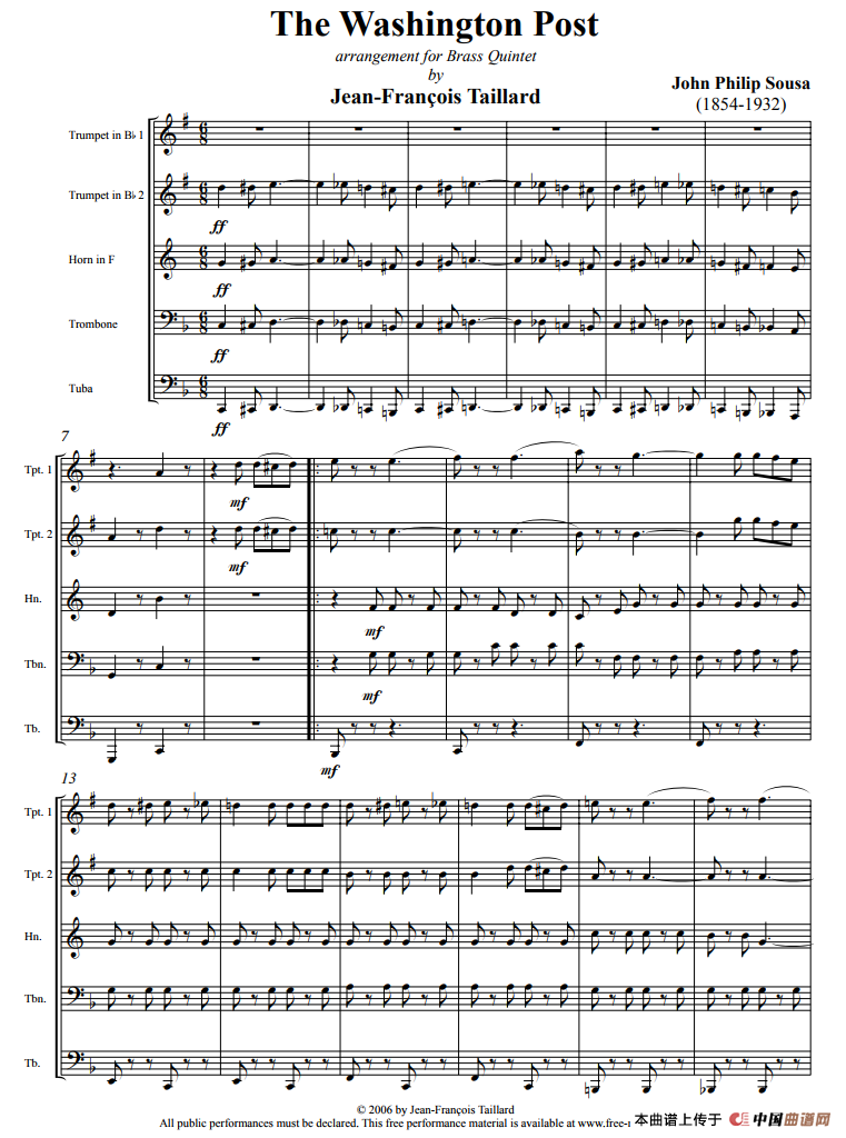 作曲:约翰·菲利浦·苏萨 来源:www.free-music-scores.com 上传:铜管wxy