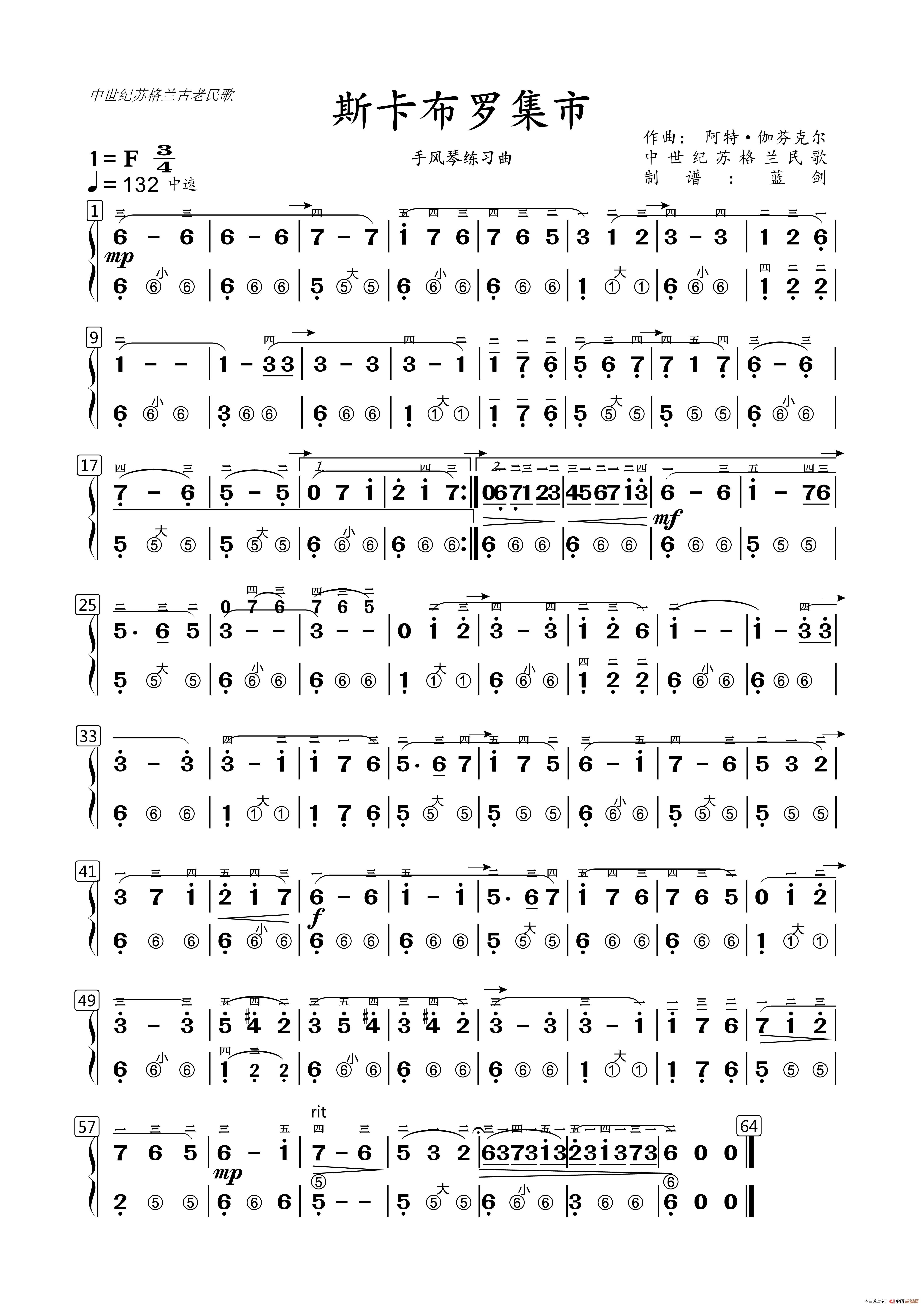 提示:在曲谱图片上单击右键,选择“图片另存为...”即可将曲谱保存到您的电脑中,打印时候可将图片插入到WORD中,调整合适大小打印即可。