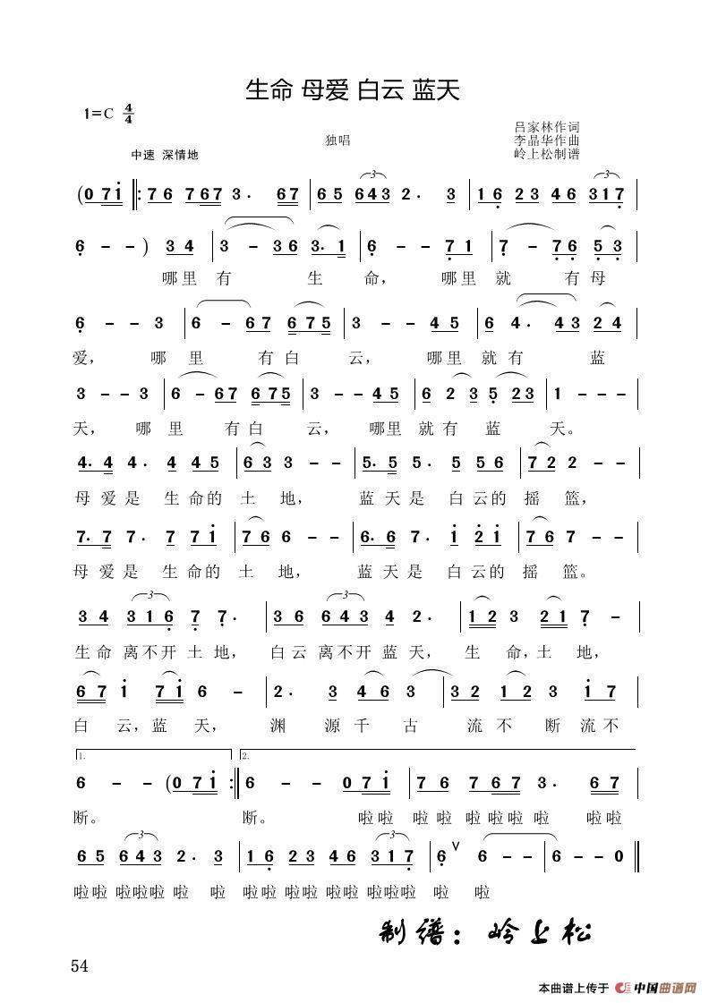 关于《生命·母爱·白云·蓝天》曲谱的评论