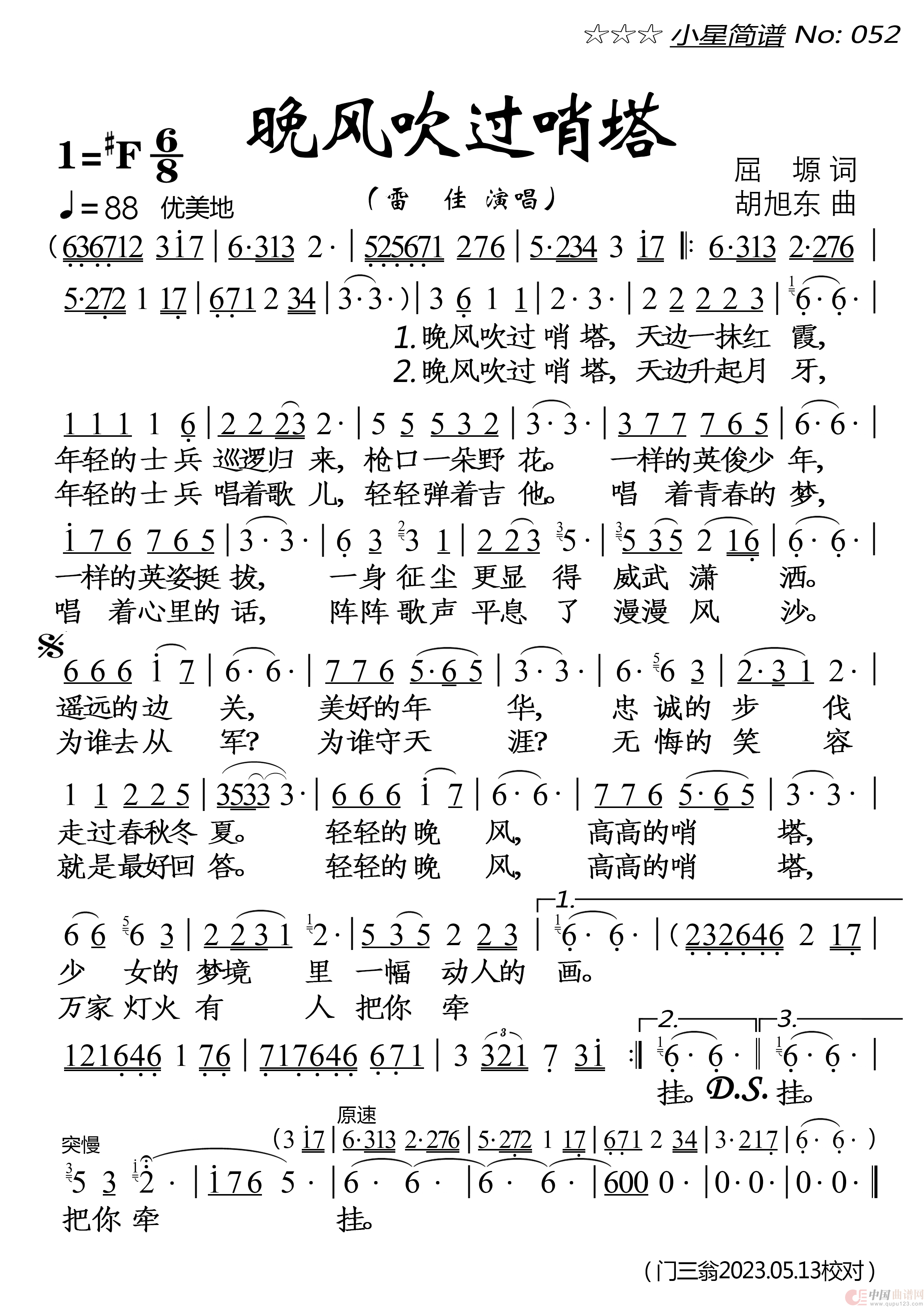 晚风吹过哨塔(1)_原文件名:小星简谱052★《晚风吹过哨塔》★ 雷佳 20220727-边距2 20230513校对 20250510.png