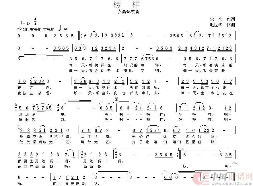 关于《榜样》曲谱的评论
