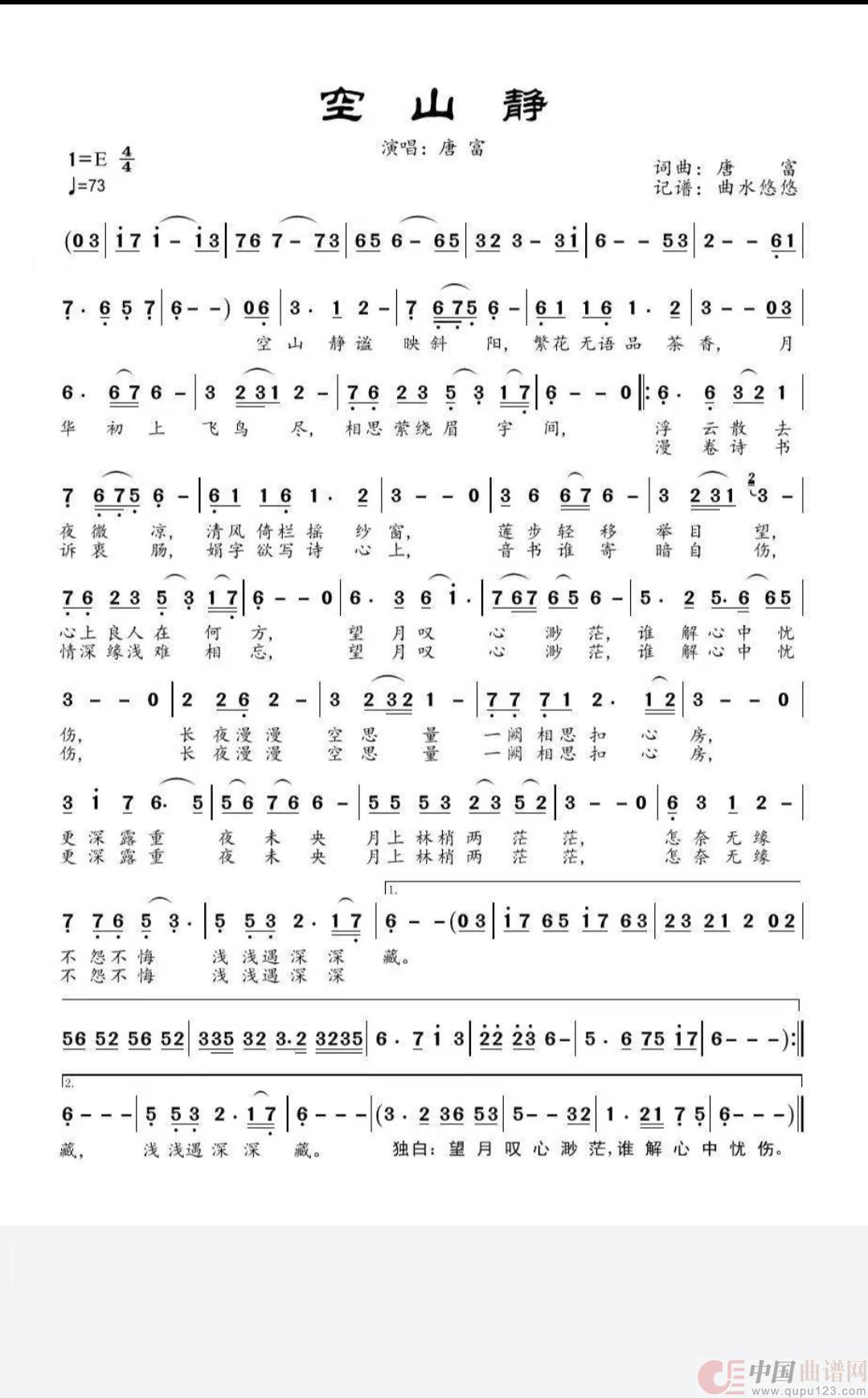 《空山静》创作者是唐富 吉林省珲春市人 1975年出生 这首歌是借助唐朝诗人王维的《鸟鸣涧》为背景 并加以延伸 借景生情
