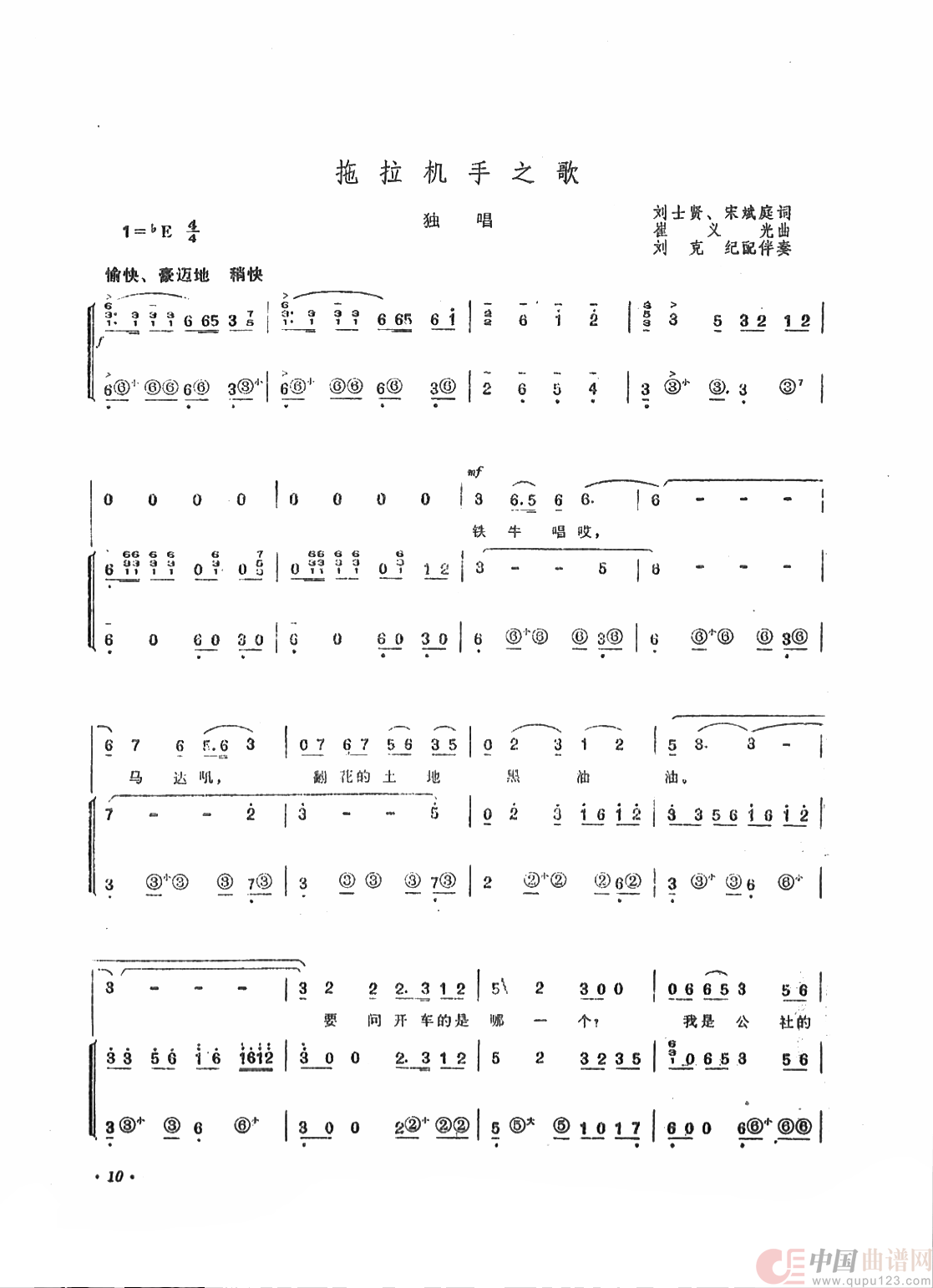 关于《拖拉机手之歌》曲谱的评论