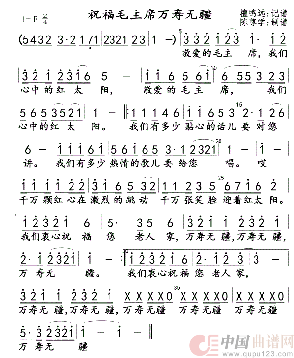 关于《祝福毛主席万寿无疆》曲谱的评论