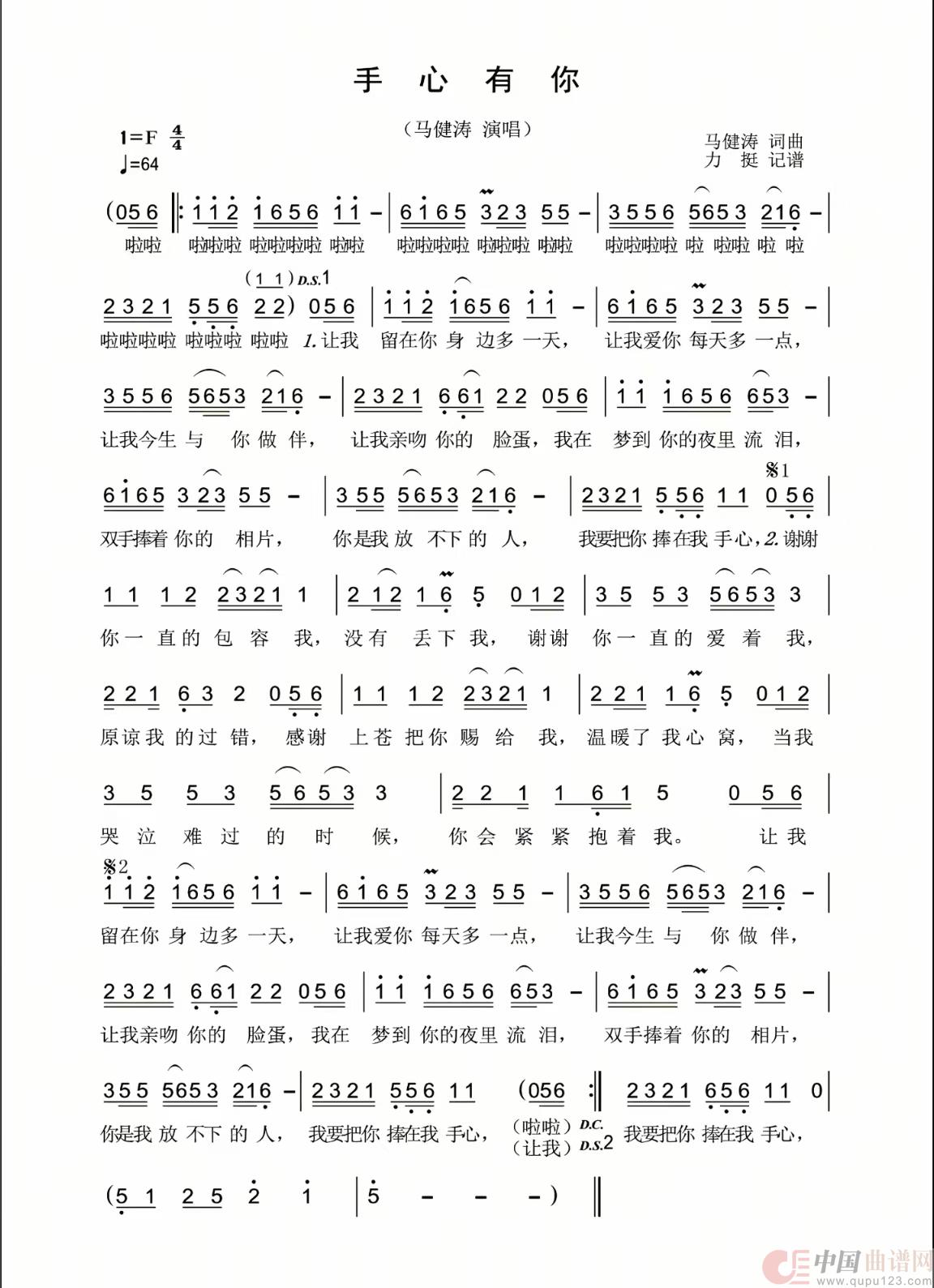 关于《手心有你》曲谱的评论