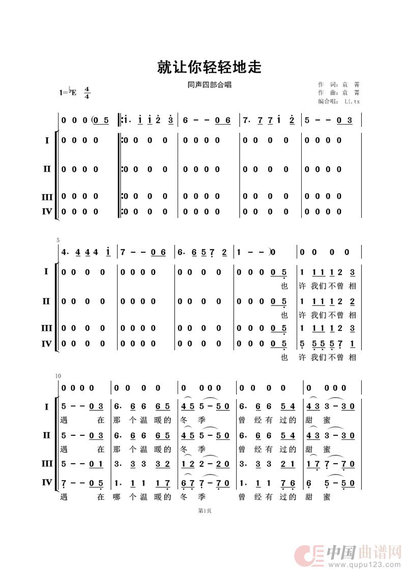 提示:在曲谱图片上单击右键,选择“图片另存为...”即可将曲谱保存到您的电脑中,打印时候可将图片插入到WORD中,调整合适大小打印即可。