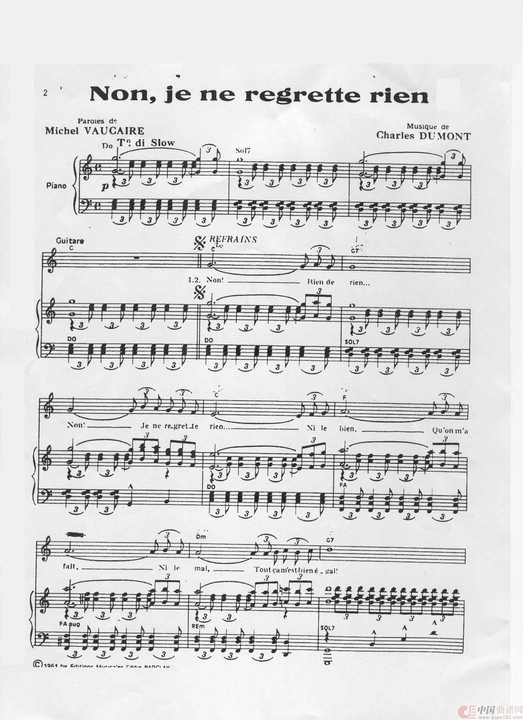 关于《Non je ne regrette rien》曲谱的评论