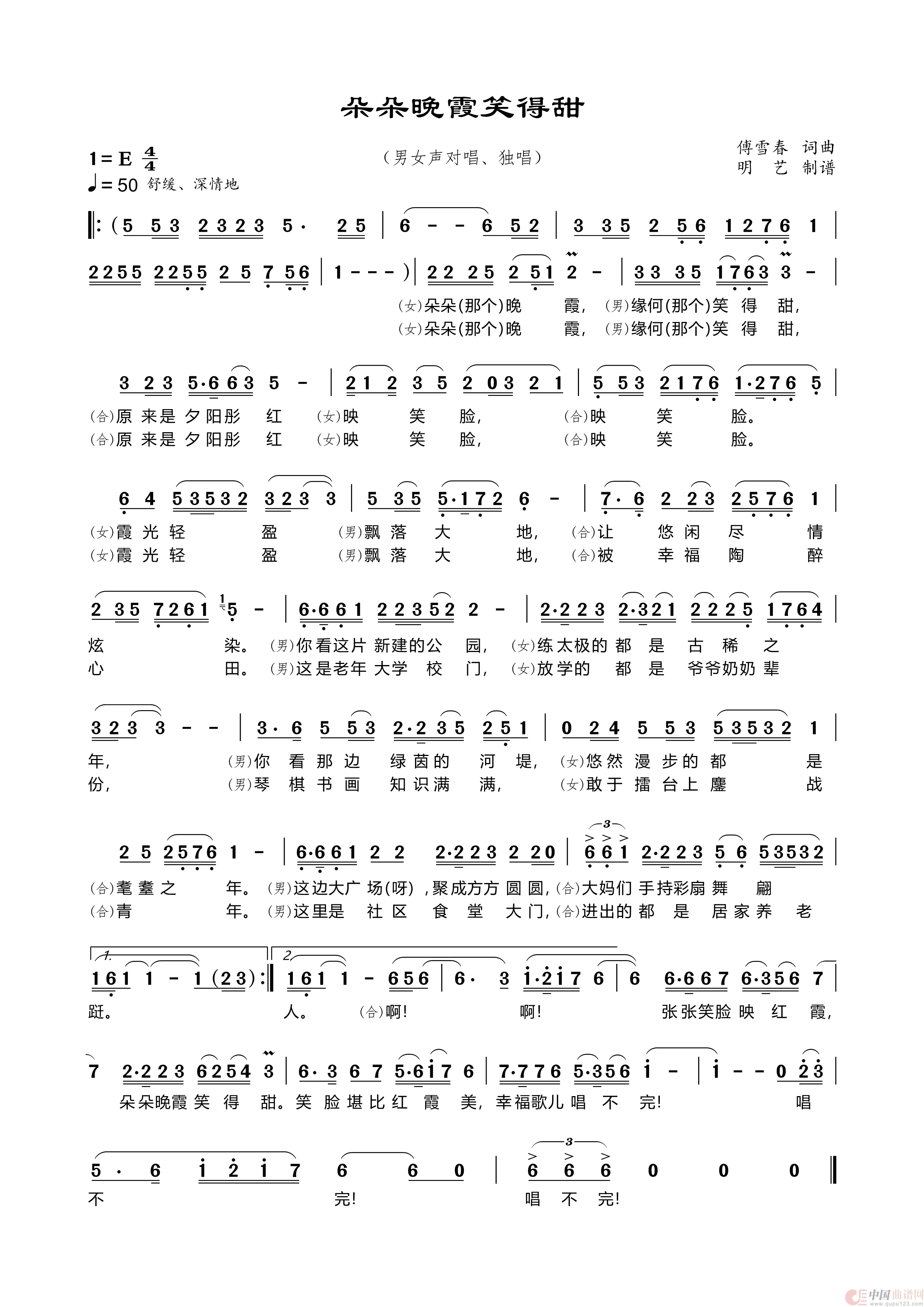 作词:傅雪春 作曲:傅雪春 来源:谱友明艺上传 上传:明艺
