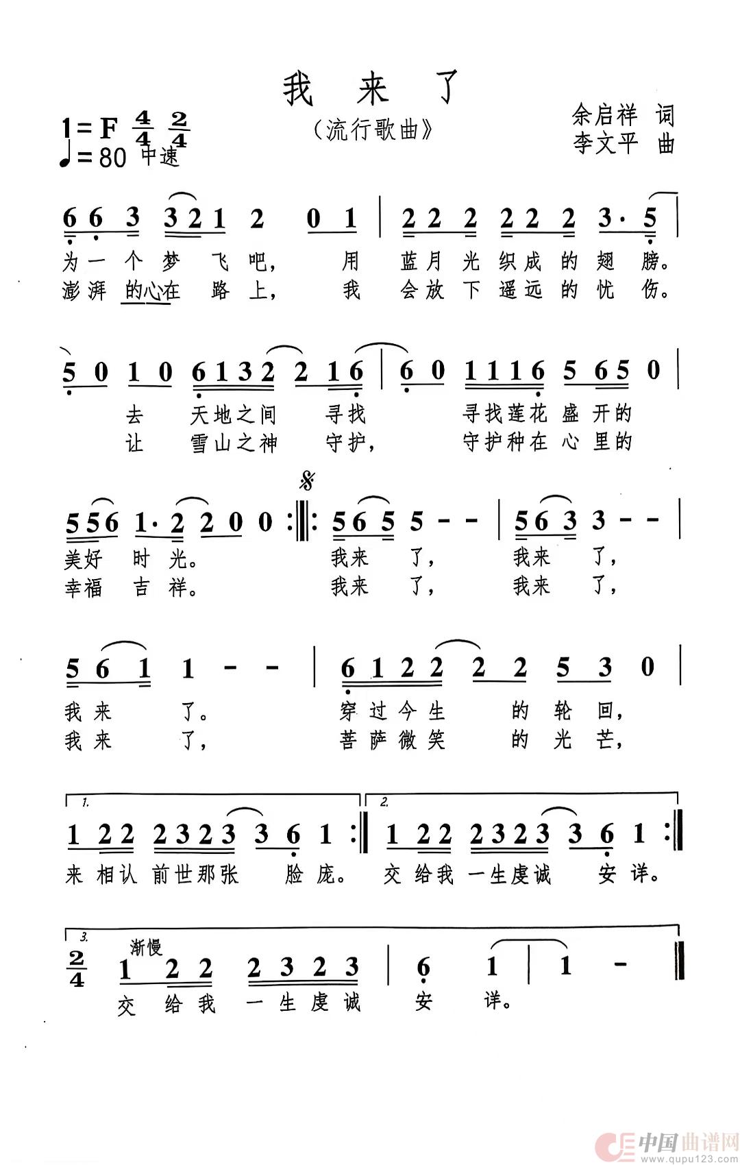 关于《我来了》曲谱的评论