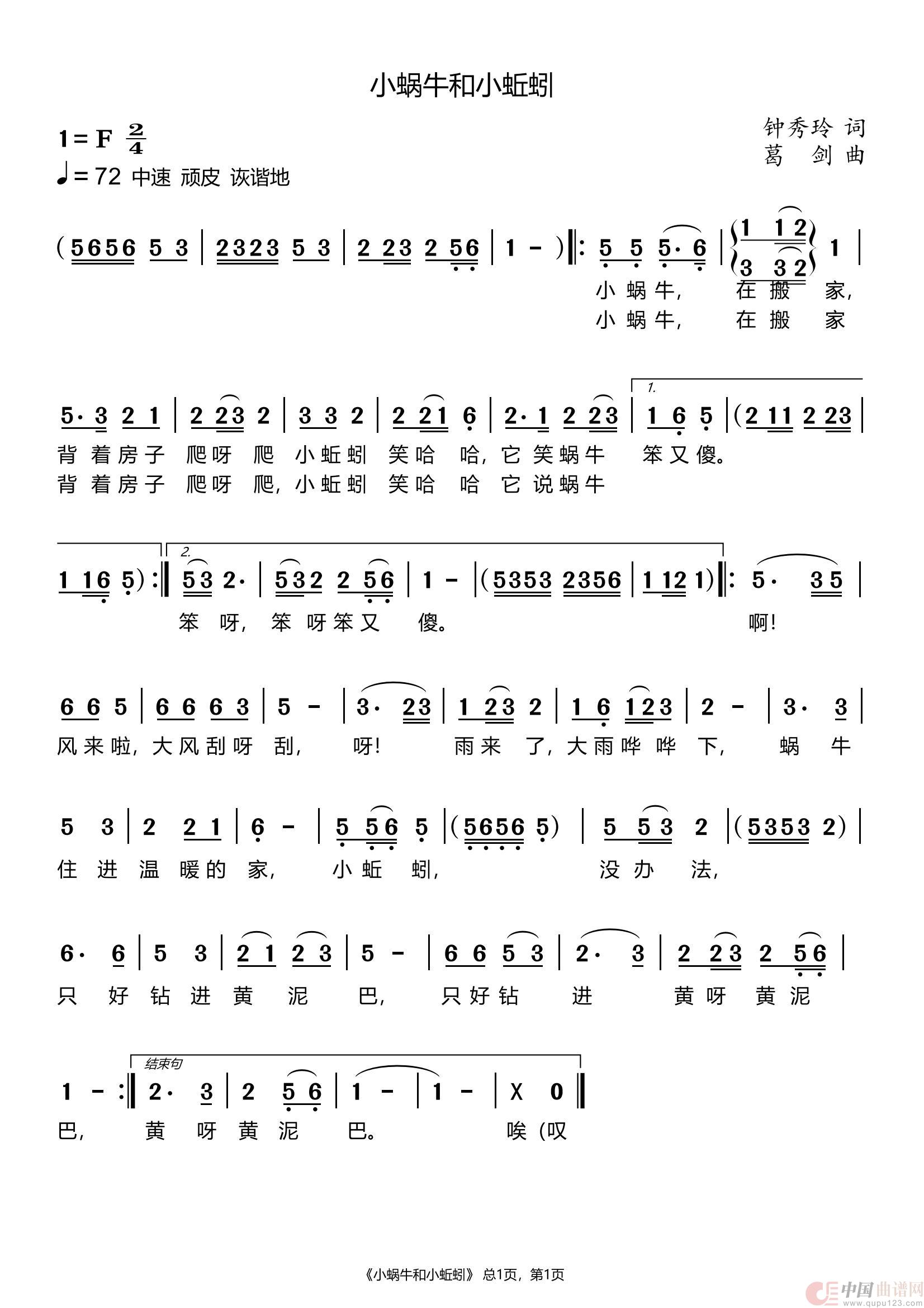 关于《小蜗牛与小蚯蚓》曲谱的评论