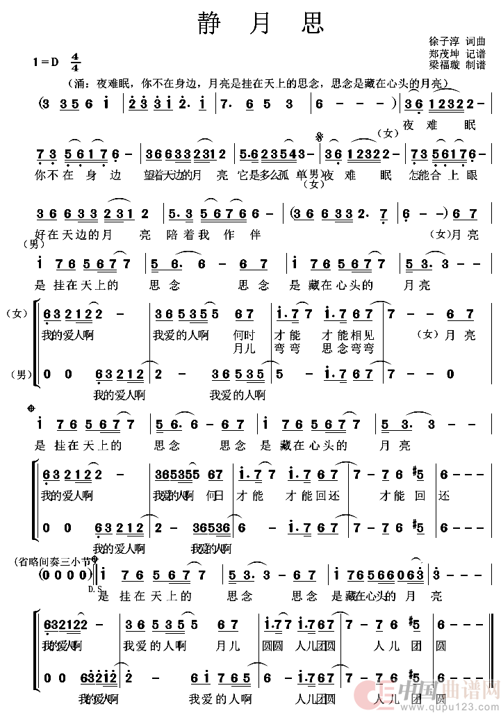 提示:在曲谱图片上单击右键,选择“图片另存为...”即可将曲谱保存到您的电脑中,打印时候可将图片插入到WORD中,调整合适大小打印即可。