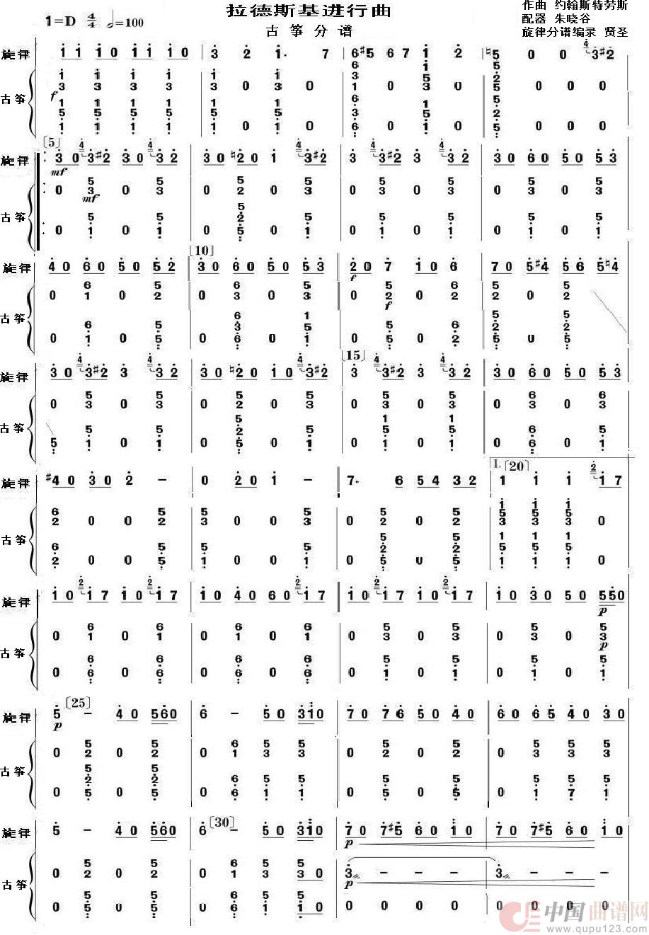 拉德斯基进行曲(民族器乐合奏 古筝分谱)