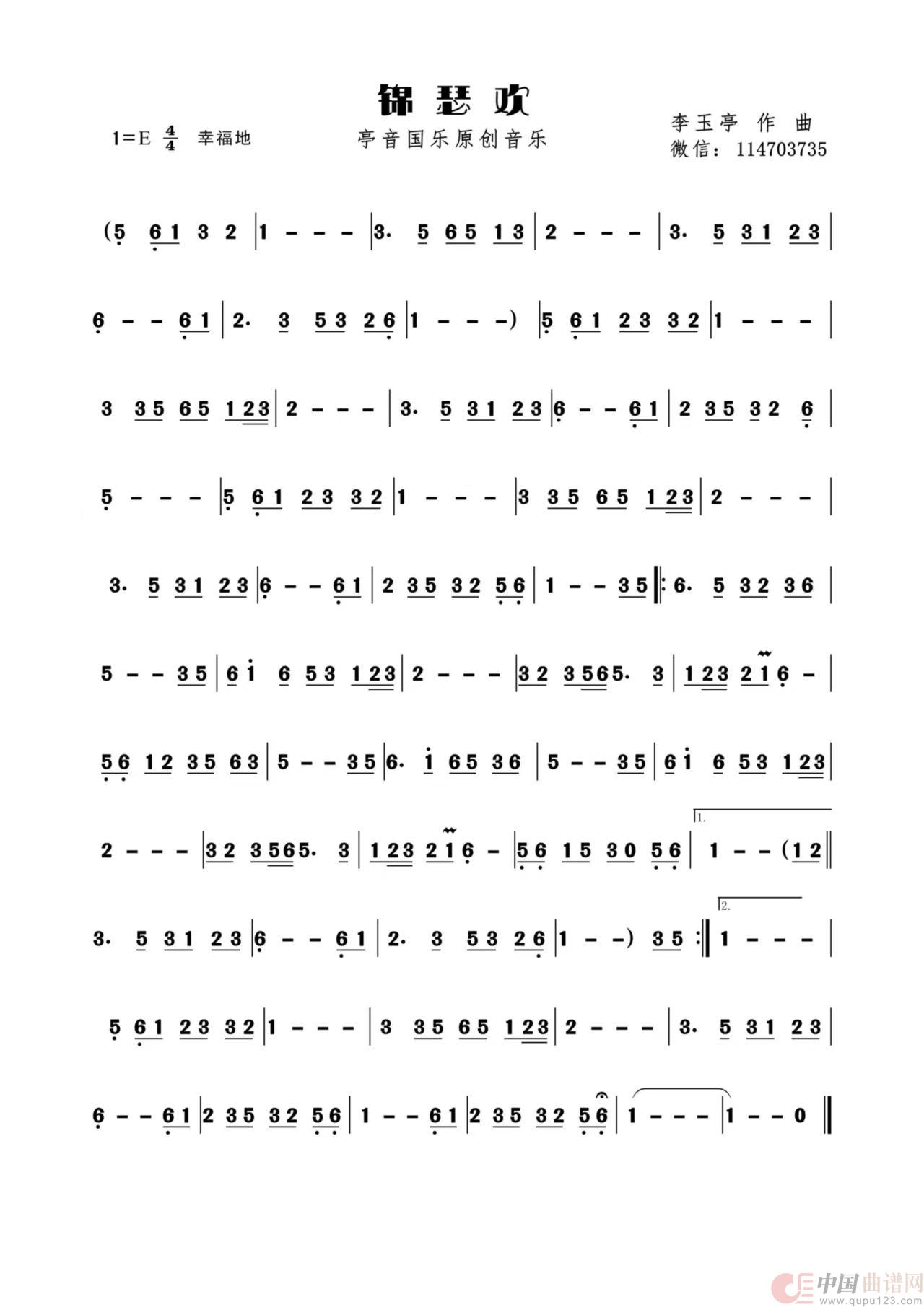 关于《锦瑟欢》曲谱的评论