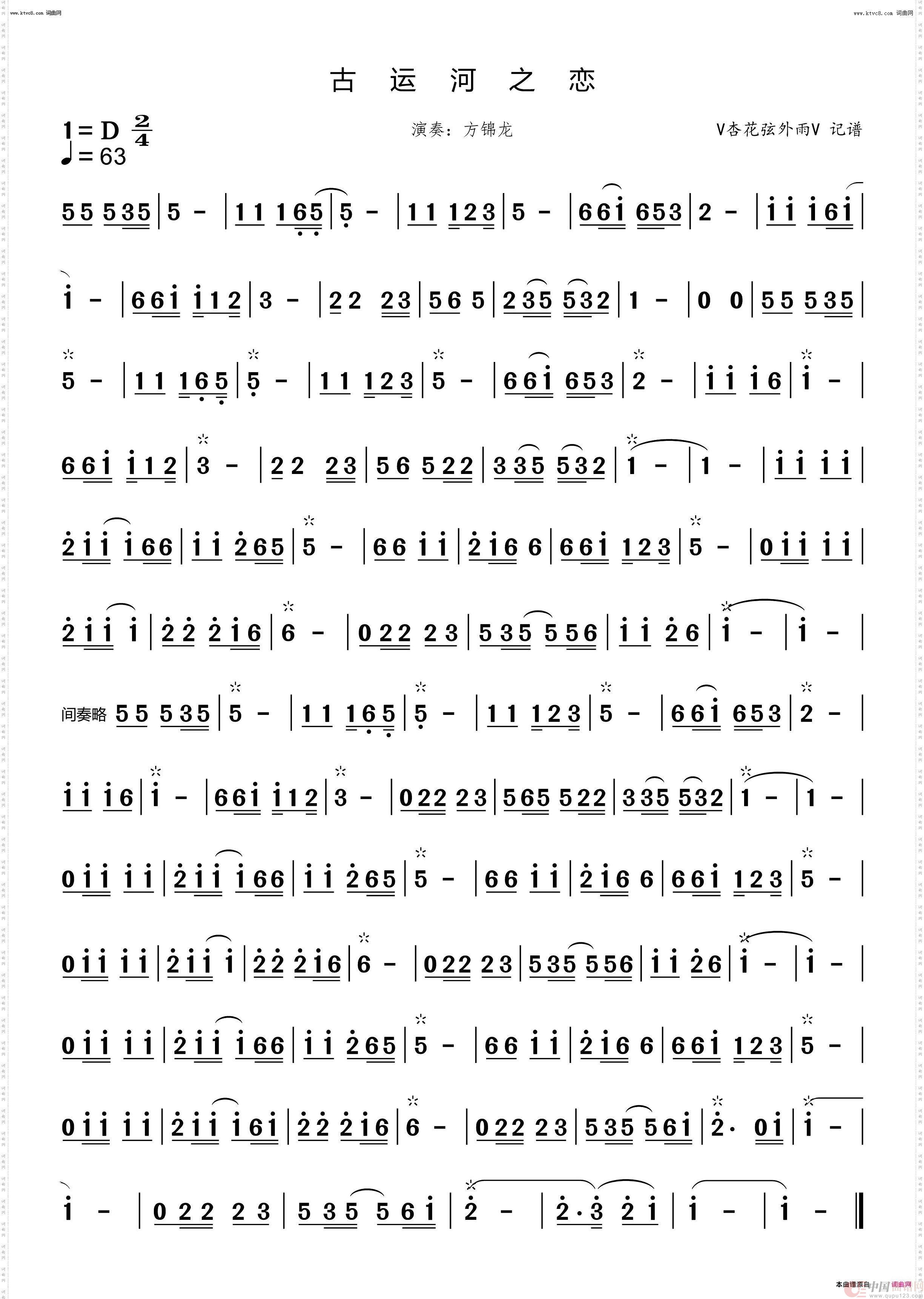关于《古运河之恋》曲谱的评论