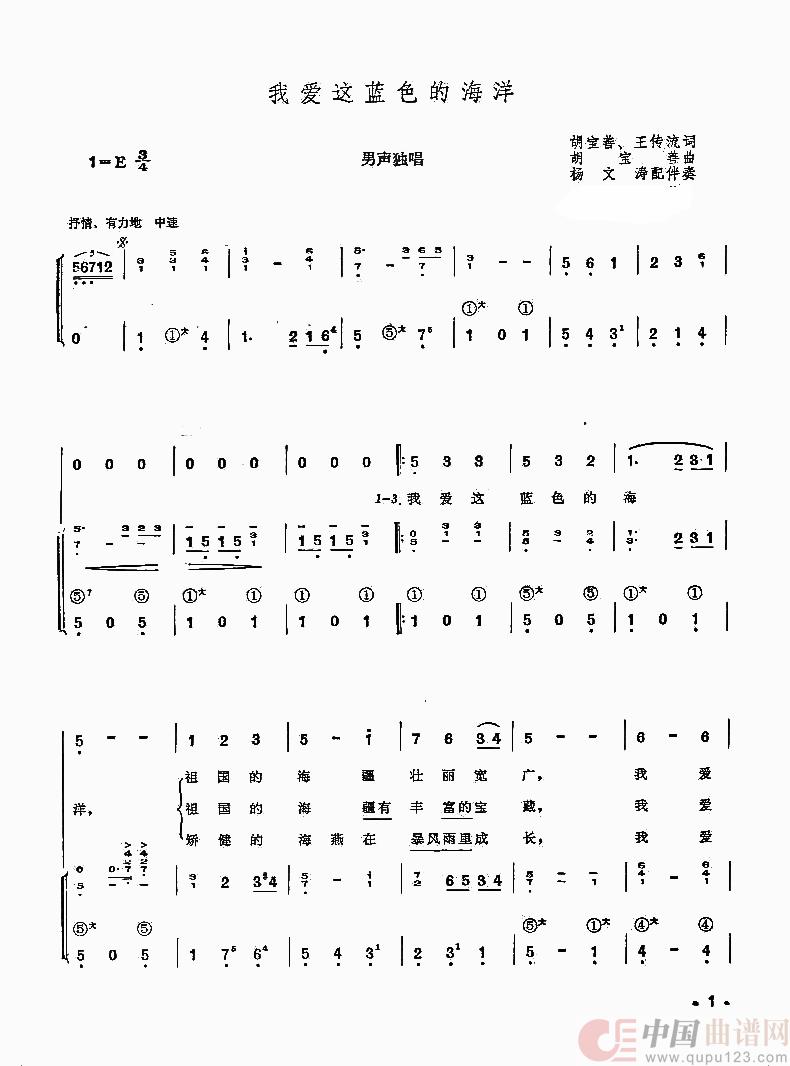 我爱这蓝色的海洋(手风琴伴奏简谱)