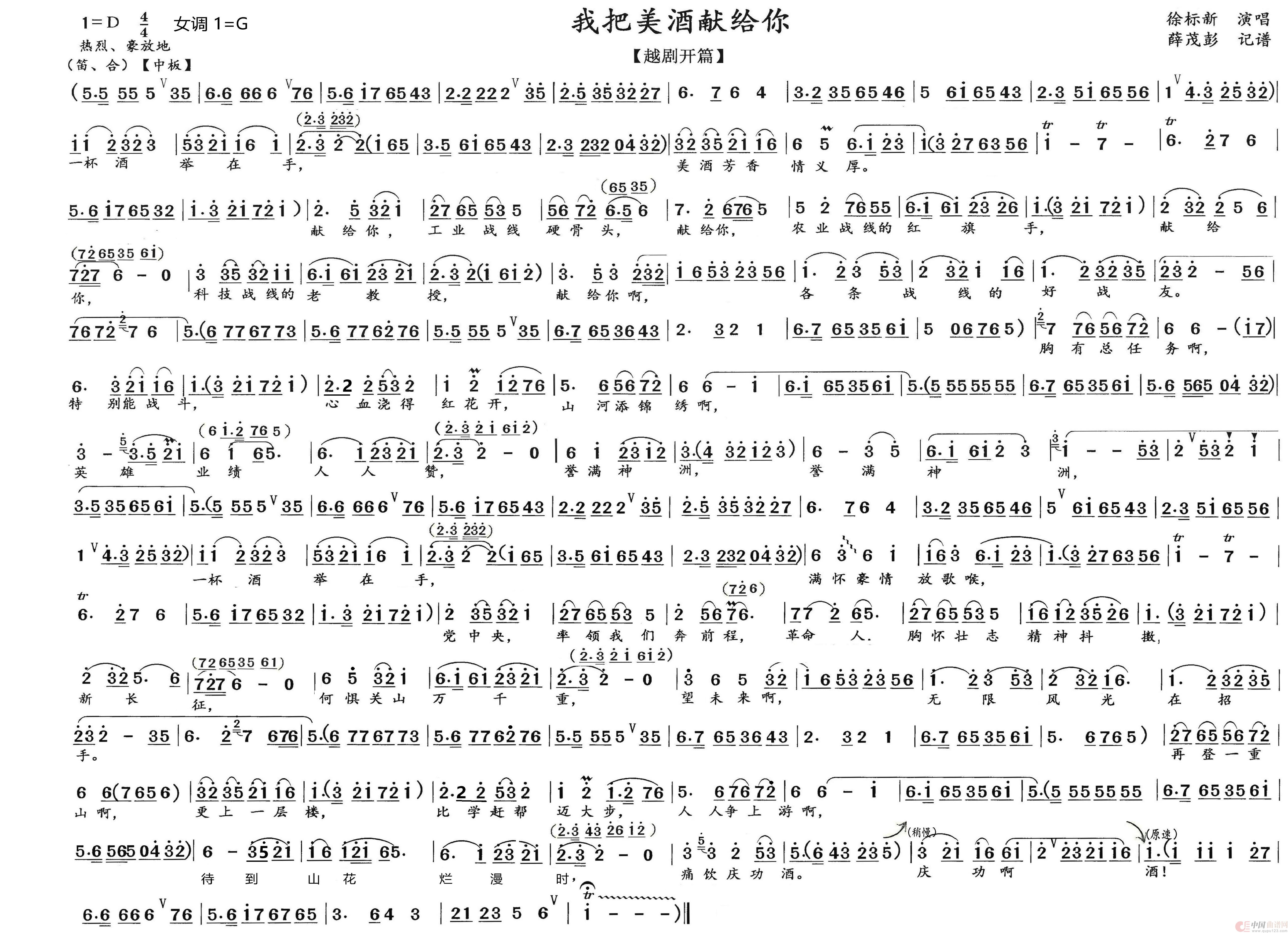 关于《越剧 我把美酒献给你》曲谱的评论
