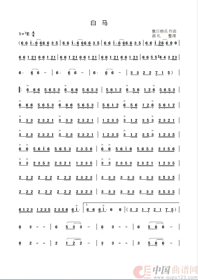 提示:在曲谱图片上单击右键,选择“图片另存为...”即可将曲谱保存到您的电脑中,打印时候可将图片插入到WORD中,调整合适大小打印即可。