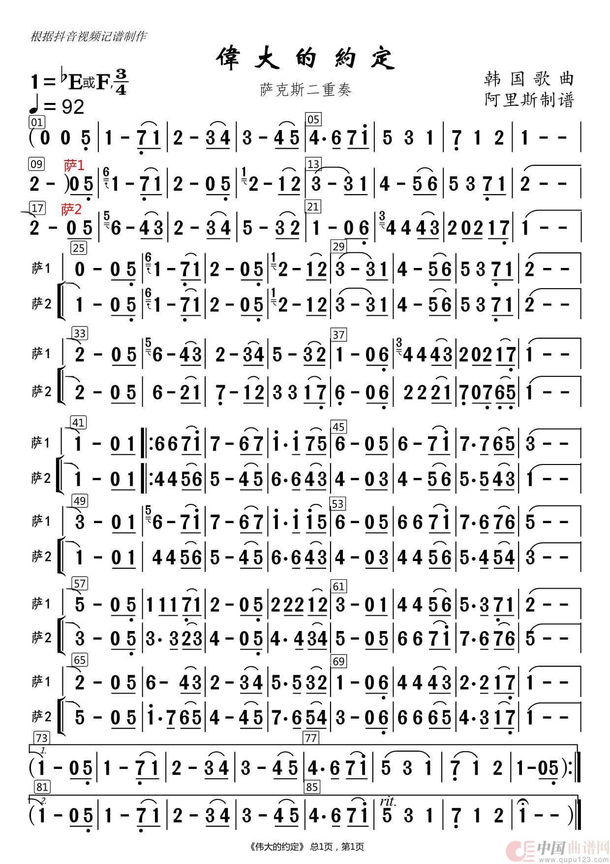 提示:在曲谱图片上单击右键,选择"图片另存为..."即可将曲谱保存到您的电脑中,打印时候可将图片插入到WORD中,调整合适大小打印即可。