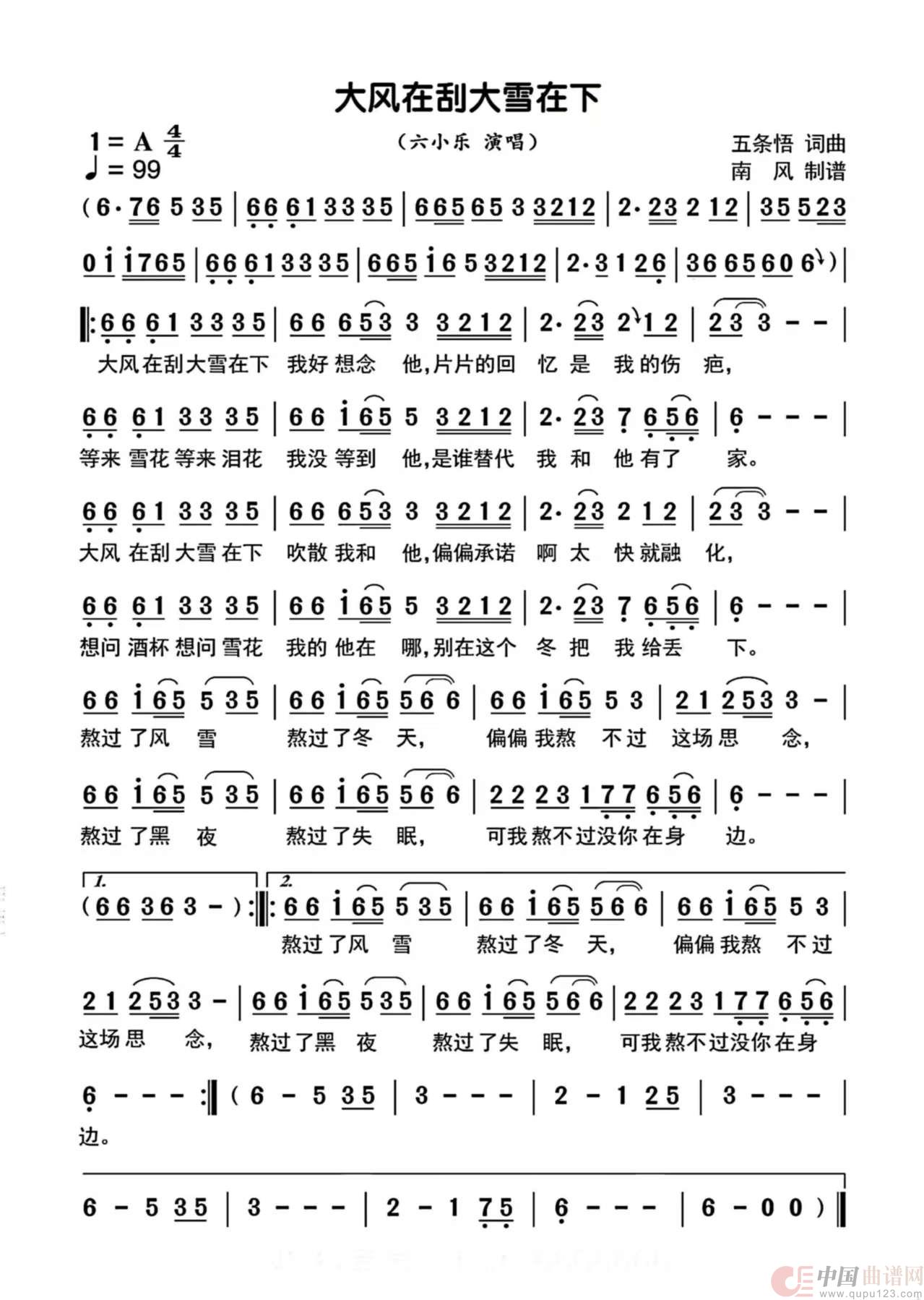 关于《大风在刮大雪在下》曲谱的评论