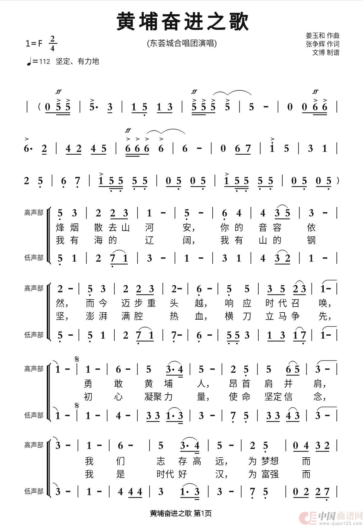 关于《黄埔奋进之歌》曲谱的评论