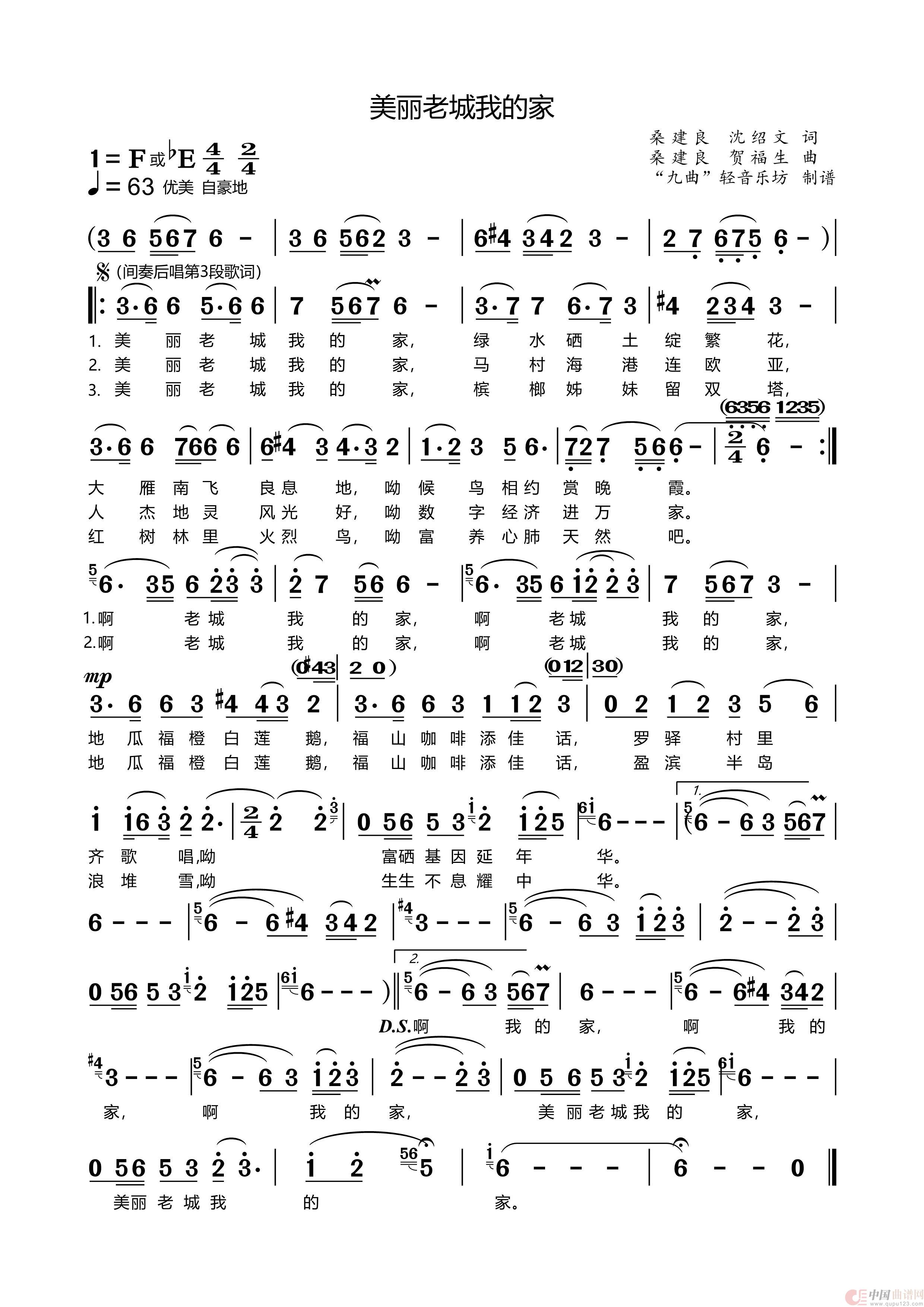 关于《美丽老城我的家》曲谱的评论