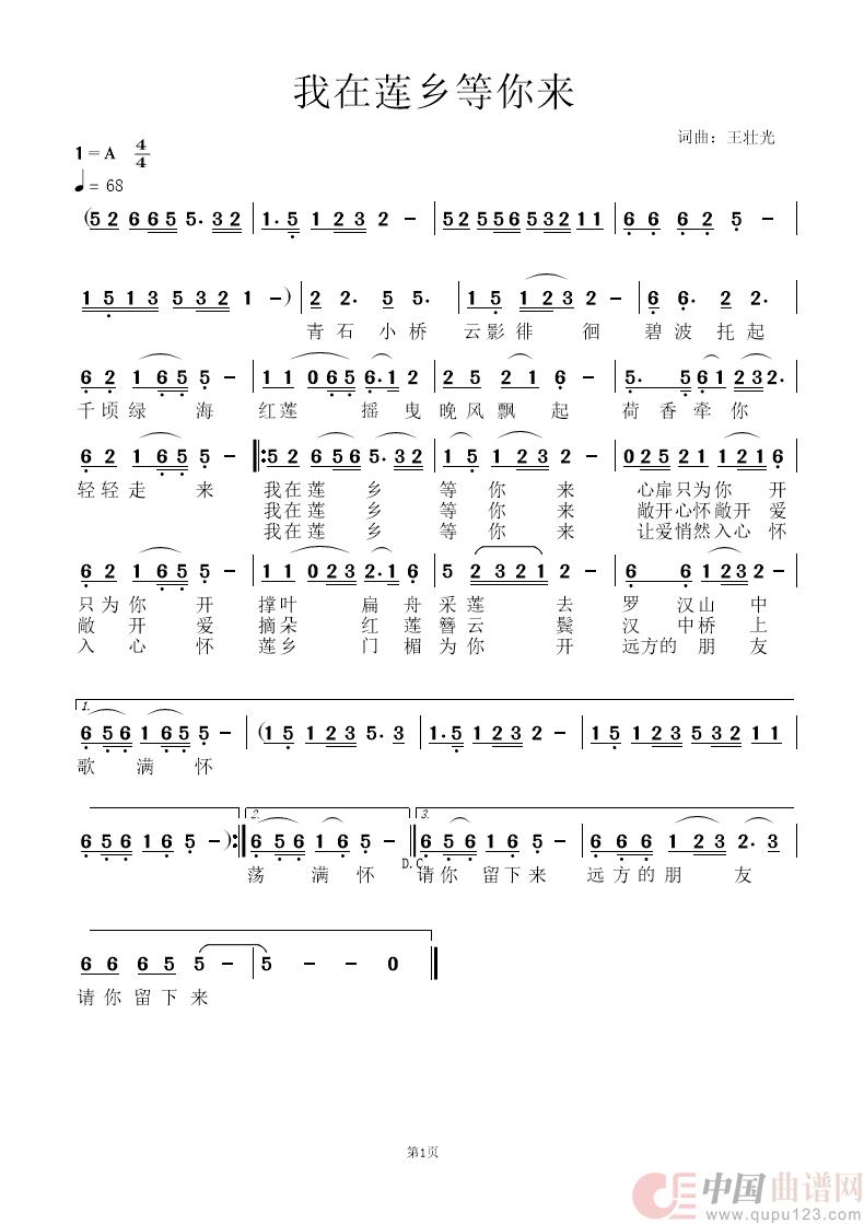 关于《我在莲乡等你来》曲谱的评论