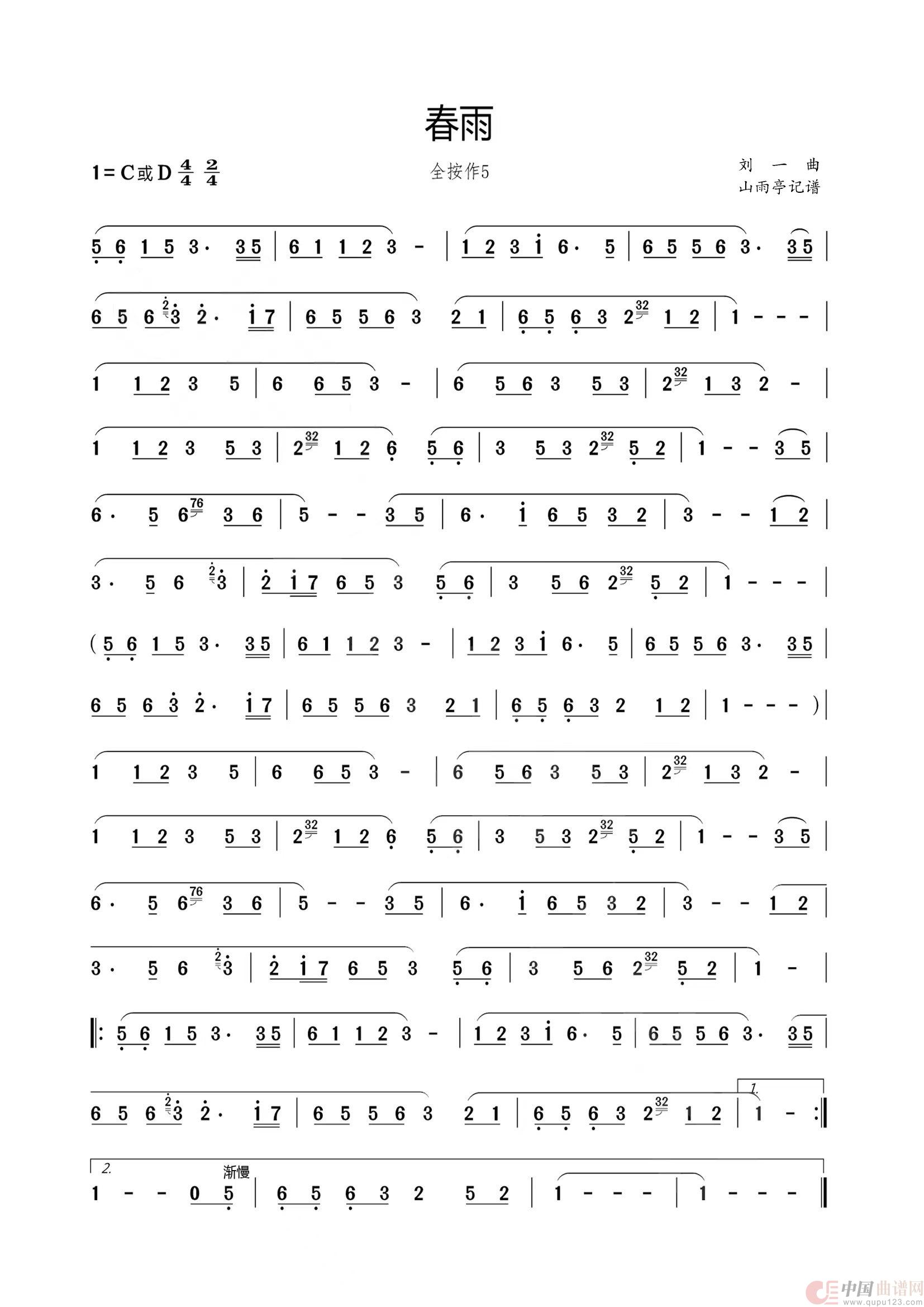 作曲:刘一 来源:记谱 上传:山雨亭