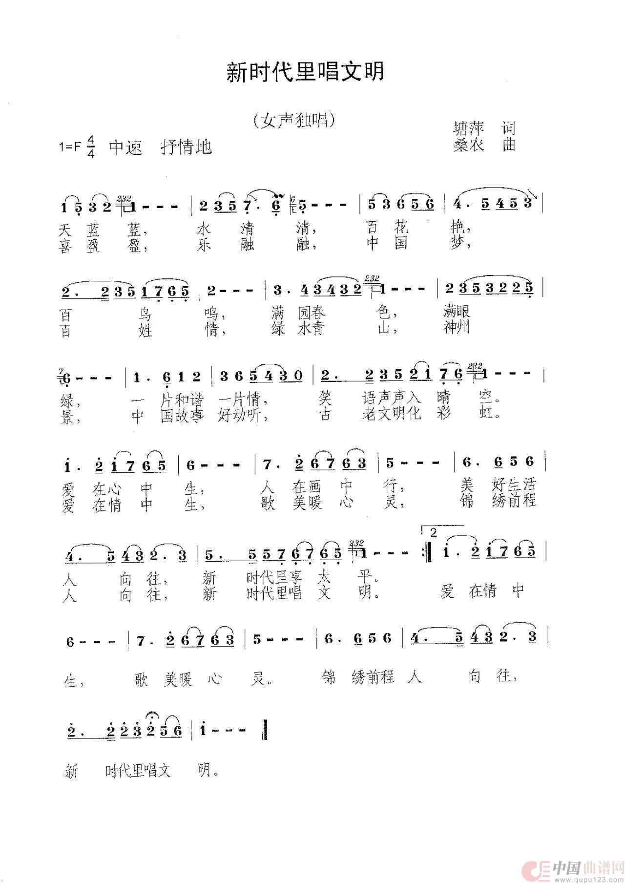 《新时代里唱文明》(词:塘萍 曲:桑农)